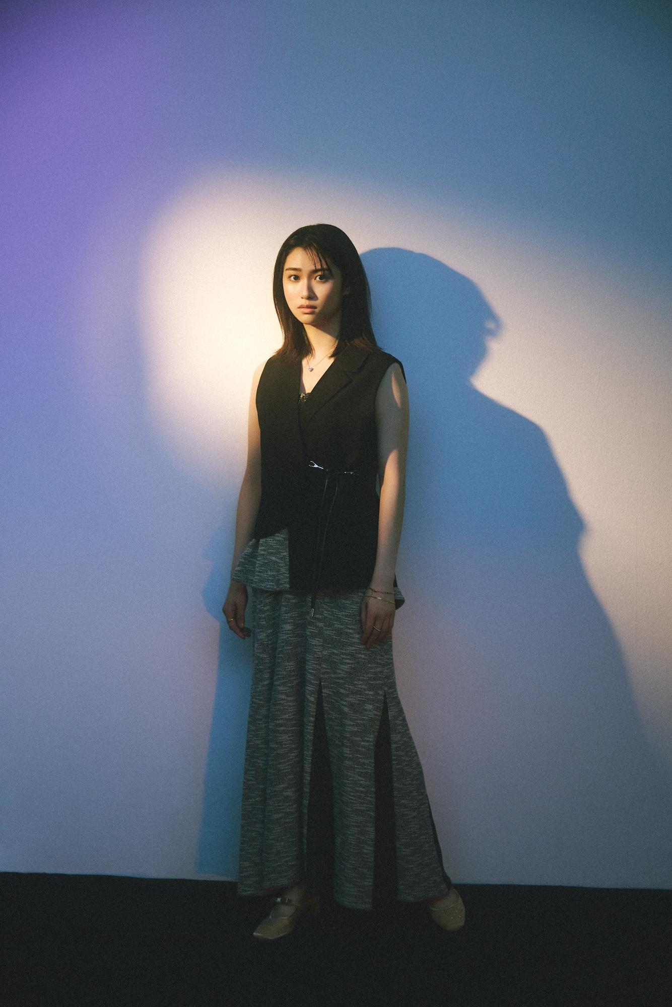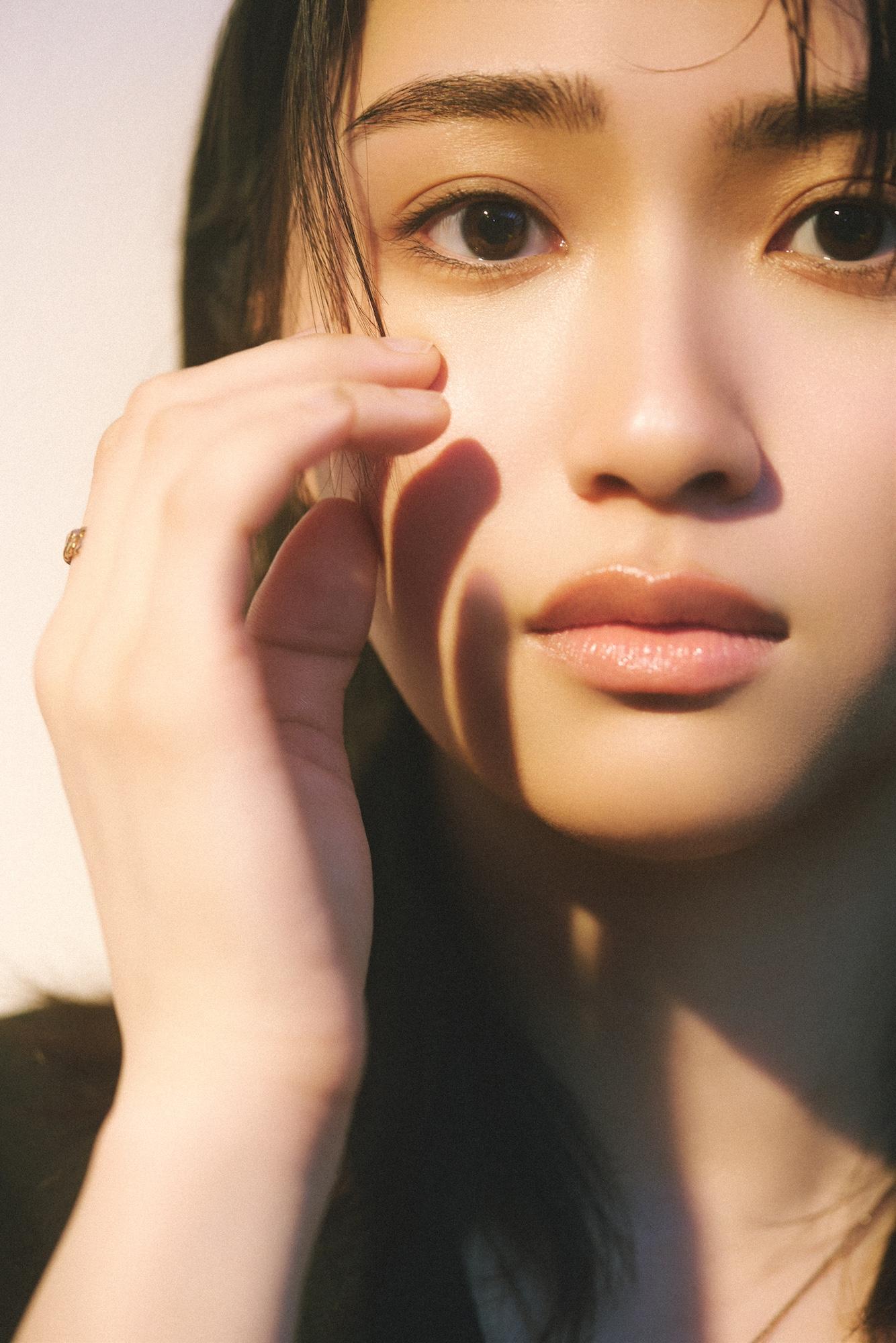「最初は眉を隠すためだったけど、似合うと言ってもらえることが多かったので、だんだんこれが正解なのかな?と思うようになっていて。“自分の中の正解”を変えるのは怖かったというか。でも今回素敵に撮影してもらったので、変えてみたいと思いました。メイクも、まつ毛を上げないで陰影を入れたり、色のないものを足していたり。ナチュラルなのに顔立ちが引き立って、不思議でした。色気は私の中で一番遠い存在だと思っていましたが、今日ちょっとだけ感じることができました(笑)」
