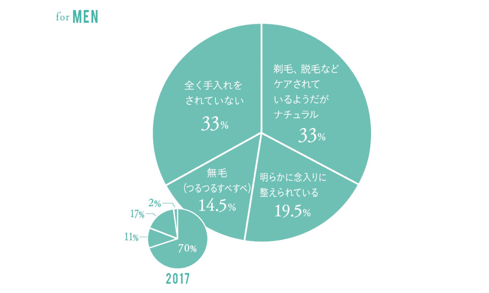 親密な関係の男性と抱き合う瞬間。お互いの肌が密着すると、自ずと相手の体毛にも目がとまる。彼はどんな“ケ活”をしているのだろう。なかでも気になるアンダーヘアのケアについて、ananは2017年から注目。アンケートをとり続けている。今回は、その最新版を実施。過去と現在、どんな変化があったのか。
