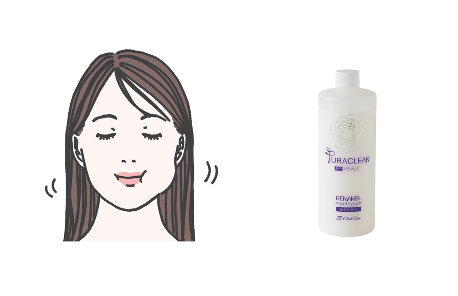 マウスウォッシュによるうがいは、口臭予防に加えて顔のストレッチにも有効。「朝イチで行うと、寝ている間に繁殖した菌を洗い流すことができます。また、ブクブクすることで口まわりの筋肉がほぐれる効果も」