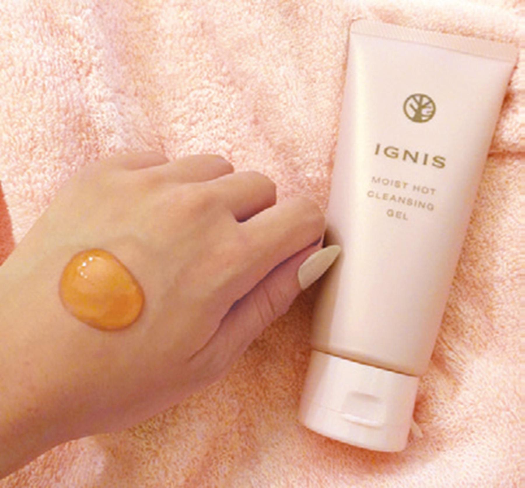 肌も心も優しくやわらげるじんわり温感クレンジング。温感ジェルベースが肌に密着し、硬くなった角層をやわらげながら、メイクや汚れを吸着。12種のハーブをブレンドした穏やかな香り。「肌にのせた瞬間、じゅわーっと温かくなって、メイクがとろけるように落ちる感じがお気に入り。肌がしっとり柔らかくなります」モイスト ホットクレンジングジェル 150g ¥3,850(イグニス TEL. 0120-664-227)