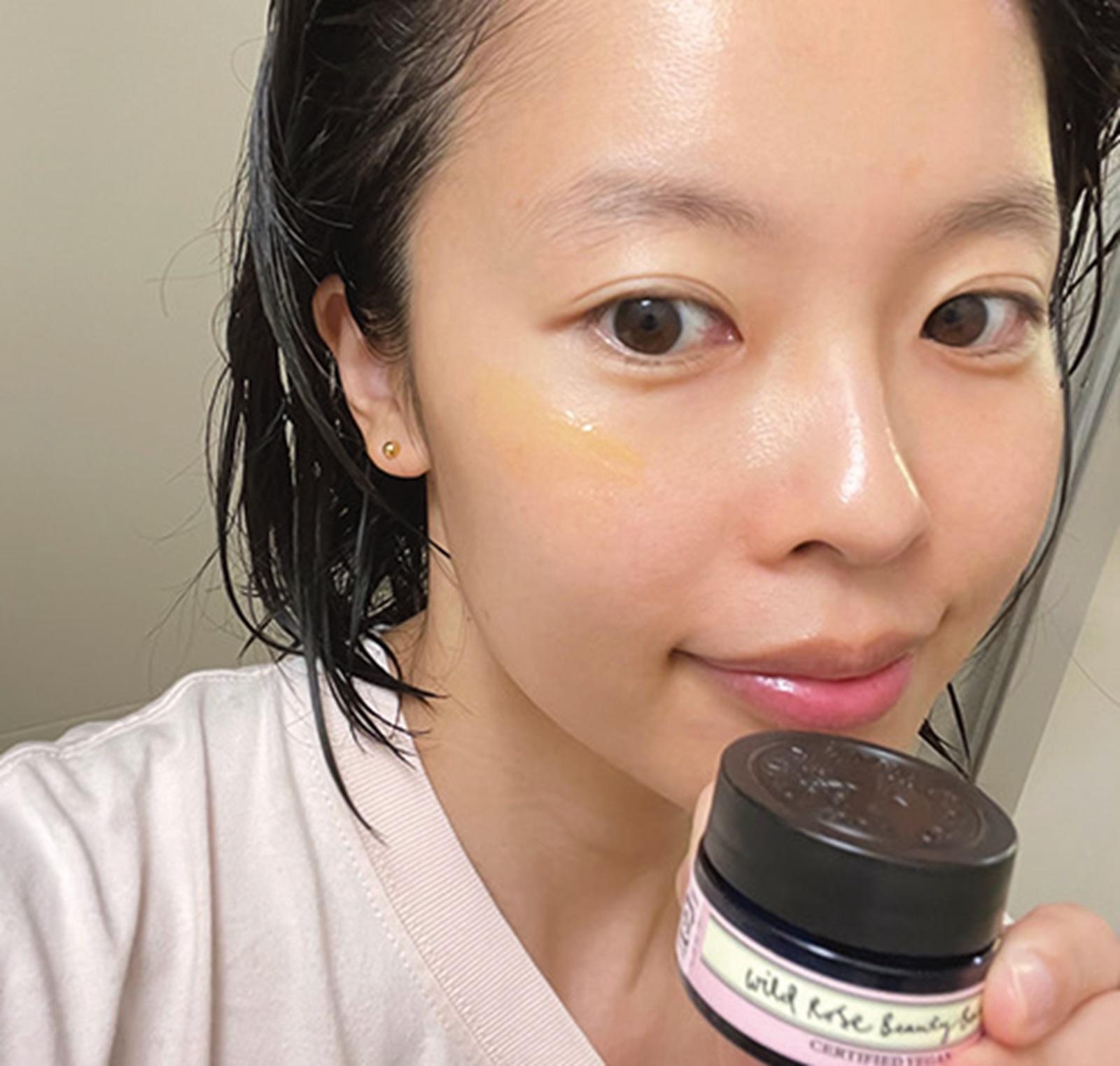 デイリーケアもスペシャルケアもゆらぎ対策もかなう自然派バーム。「乾燥してこわばった肌が一気にほぐされるよう。濃密なのに重すぎず、もっちり感とツヤがすぐに。本当にお気に入り!」。ビタミン豊富なローズヒップオイルを惜しみなく配合。アクティブに潤し、乾燥ダメージを速攻オフ。ヴィーガン ワイルドローズ ビューティバーム 50g ¥9,900 12/26発売(ニールズヤードレメディーズ TEL. 0120-316-999)