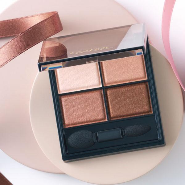 肌馴染みのいいブラウン系を厳選し、全色にくすみをカバーするパールを配合。フィットオイル配合で粉飛びせず、密着力と色持ちが持続。「右上の中間色をアイホール全体と下瞼全体に入れたら左上の明るい色を目頭にくの字に、下瞼の黒目部分や涙袋をぷっくり強調させたい部分にも入れる。右下の濃い茶を上瞼の際にラインで入れ、左下を下瞼目尻1/3に入れる。ブルベ肌にもイエベ肌にも使える多彩なパレット」。 ¥1,650(常盤薬品工業 お客様相談室[サナ] TEL. 0120-081-937)