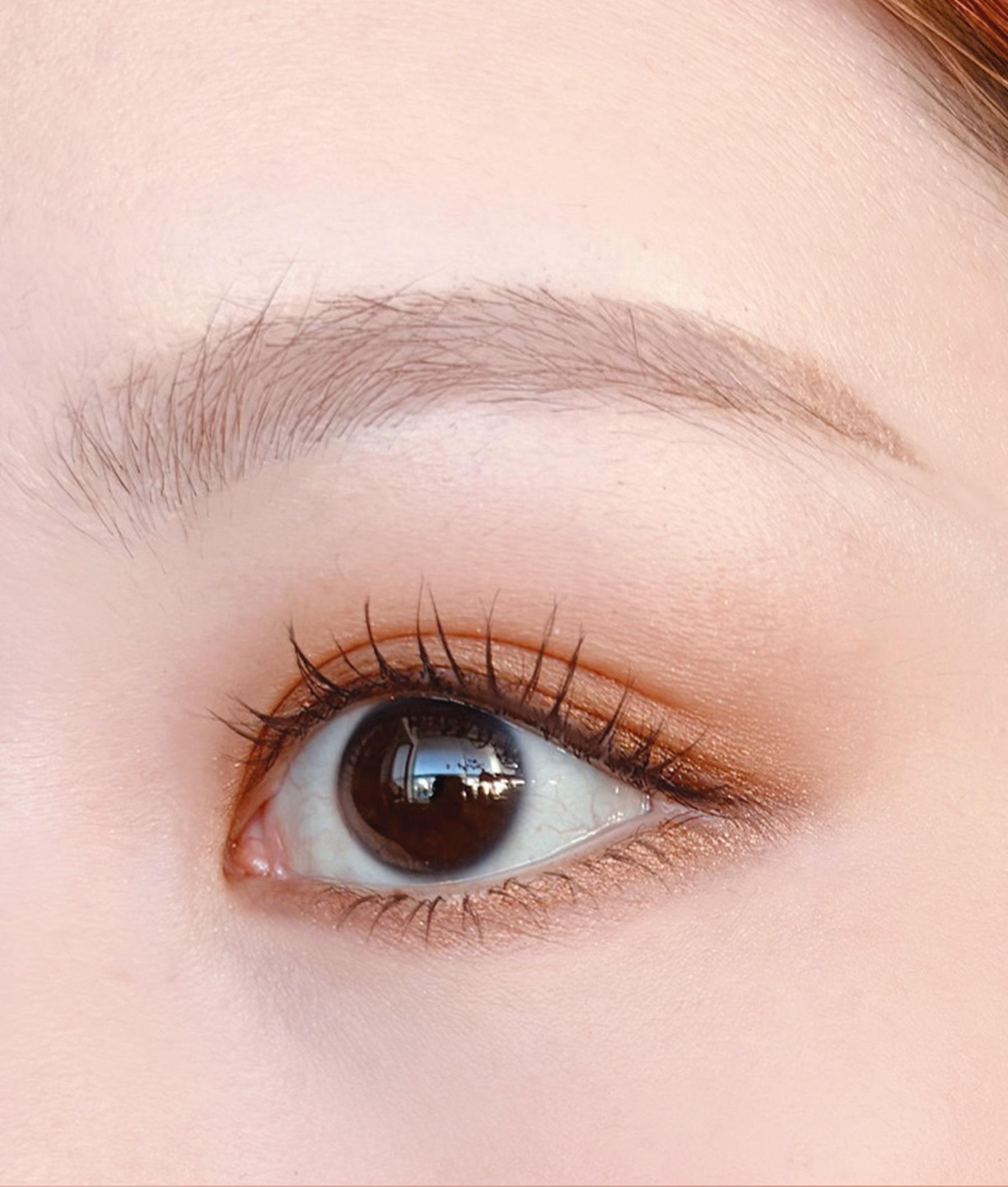 「パレットの場合、今までは明るい色でくすみを飛ばしてからが一般的でしたが、複数のシアー色を重ねる時は、一番明るい色でも一番暗い色でもなく、中間色で彫り感を作り、目を拡張させてからハイライトをのせると決まりやすいです」