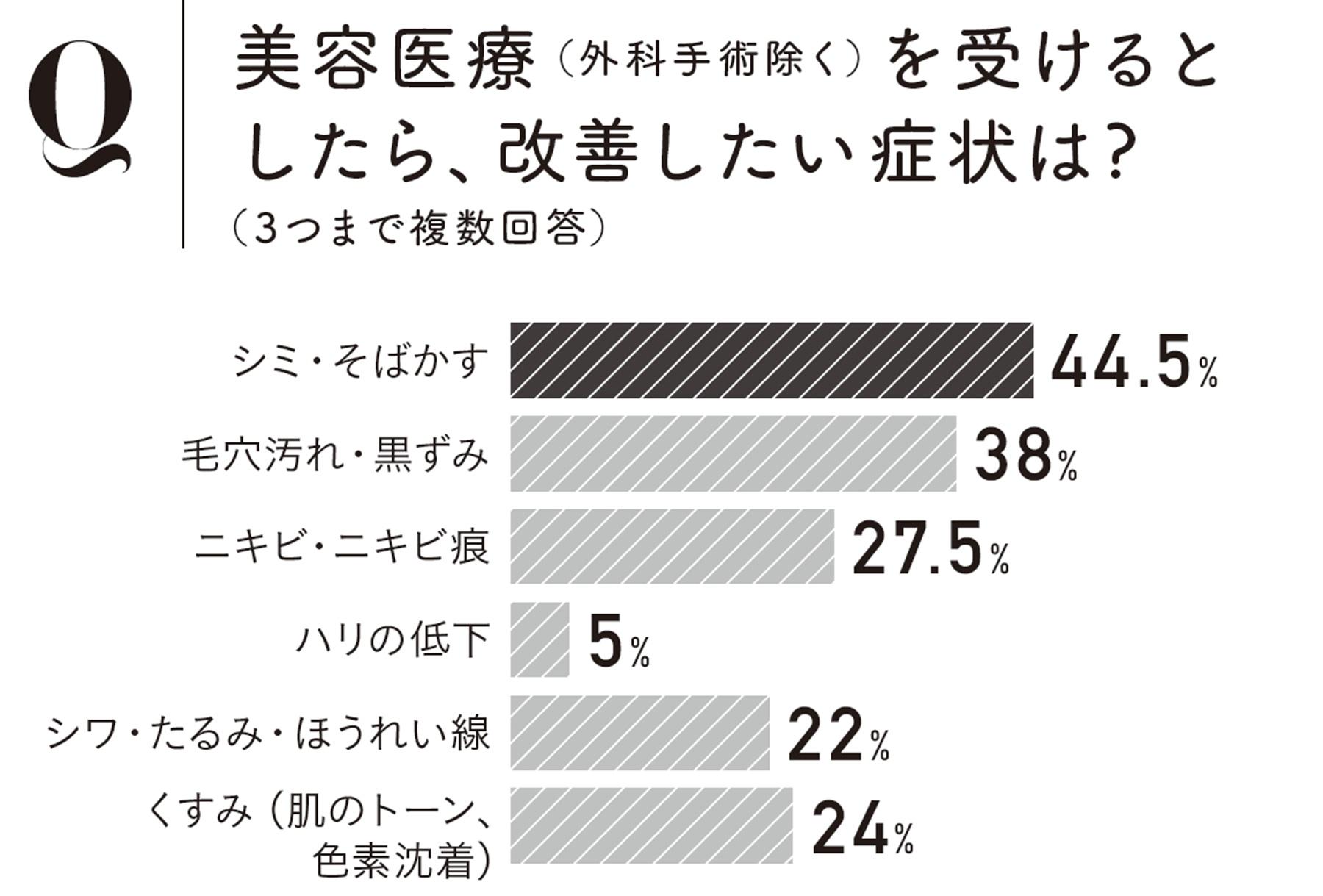 Q. 美容医療(外科手術除く)を受けるとしたら、改善したい症状は?(3つまで複数回答)