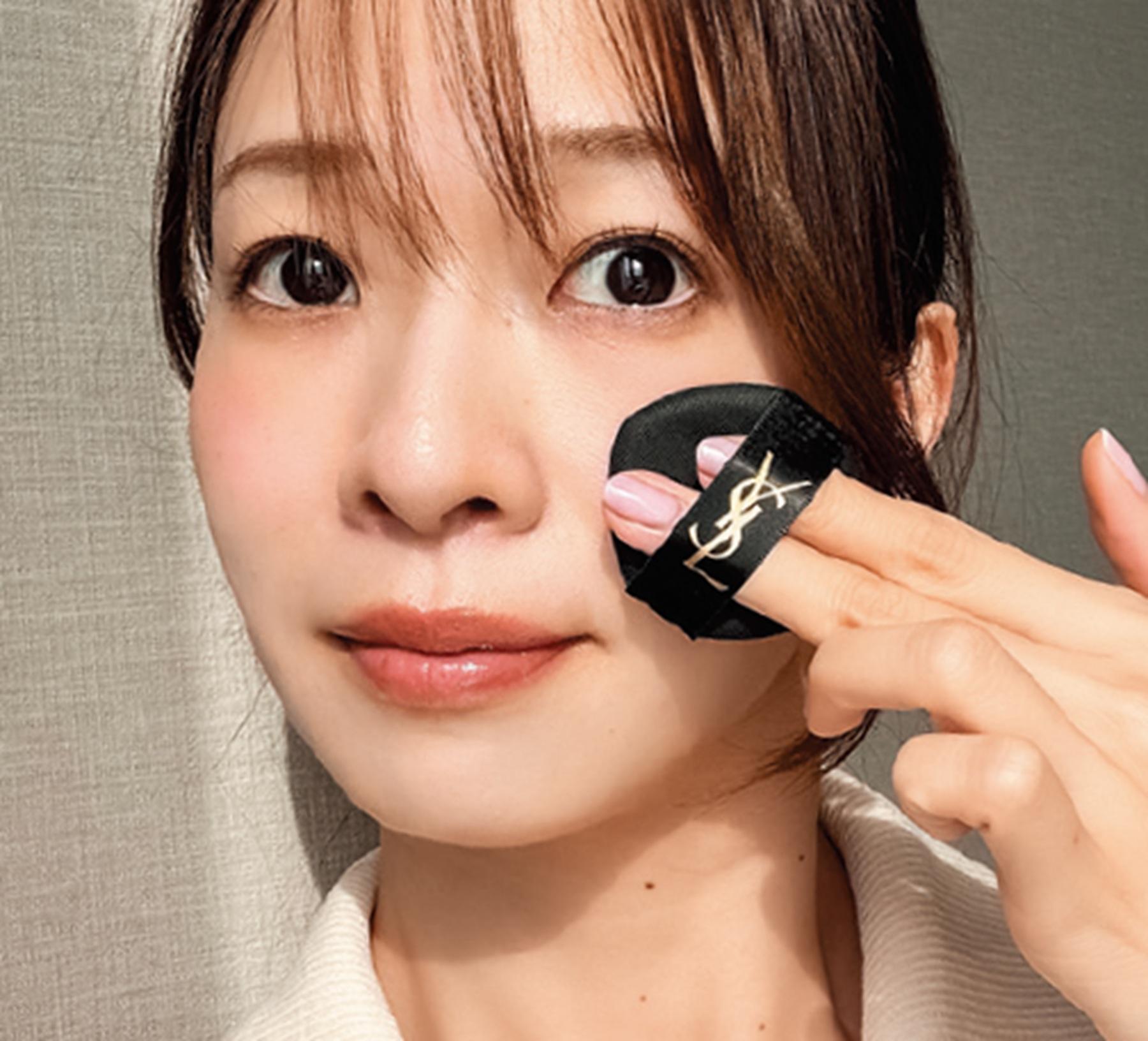 ミストとパウダーのいいとこどり! 新感覚のクールなお直しパクト。肌温度を瞬間1.5°C下げる冷感成分配合。テカリやヨレをワンタップでフレッシュに。プライマーとしても使える。「パフを肌に当てた瞬間のひんやり感がやみつき! 潤いを与えてくれながらもサラッと仕上がるギャップにびっくりするはず」。オールアワーズ ブラークッション ¥10,890 3/13限定発売(イヴ・サンローラン・ボーテ TEL. 0120-526-333)