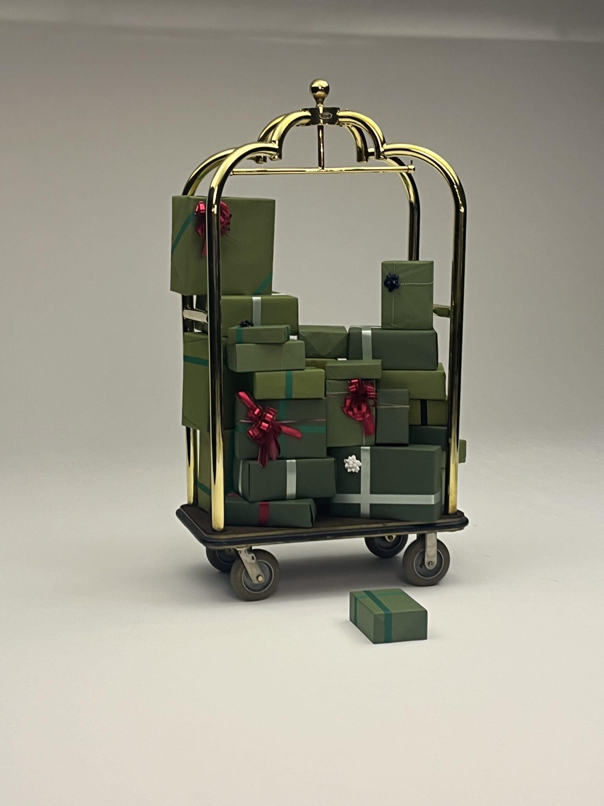 贈り物特集にリンクしたギフトボックスとワゴンの撮影小道具をスタイリストさんにご用意いただきました。これらを使用した、完成度の高いお二人ずつのワンシーンはぜひ誌面でご覧ください。
