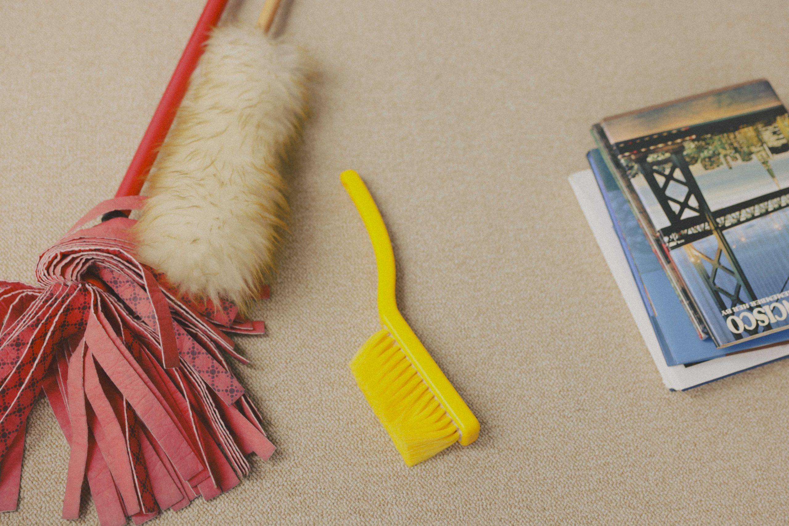 まず撮影したのは「くつろぎモード」のシチュエーション、森本さんのソロカット。率先してカメラマンとコミュニケーションをとり、モノボケさながらに次々と小道具を活用する姿に、現場のあちこちから笑い声が。空気が和んできたところで松村さんと合流し、バディカットを撮影。「まず森本さんが部屋を散らかす役、松村さんが片付ける役をしてください」という編集部からのオーダーに応えつつ、指示以上のアドリブを盛り込んでくれます。ギターのようにホウキをかき鳴らす森本さん、掃除しながら「(撮影と掃除で)労働が入れ子構造になってるよ…」とつぶやく松村さん、それぞれの個性が爆発していました。バディカットの次は松村さんのソロカット。本をぱらりとめくりながら整理する自然体な姿をたくさん見せてくれました。