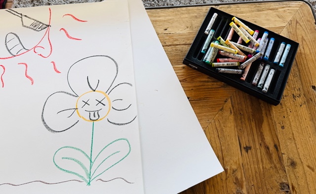 嶺亜さんの部屋をイメージした彼氏感たっぷりのシチュエーションでは画用紙とパステルも用意し、即興で絵も描いてもらいました。