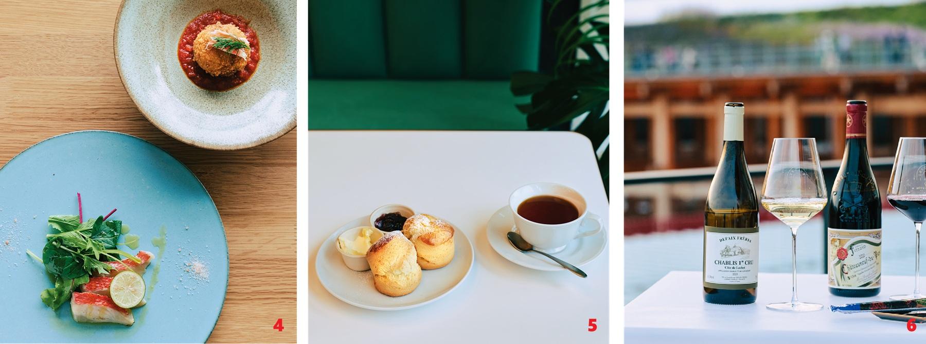 4、水上スペクタクルショーが開催されるウォータープラザに面したレストラン『水空 SUIKUU』では、国内産の食材を活かし、和食の繊細さをベースにしたコース料理を提供。ここでしか味わえないビールも。