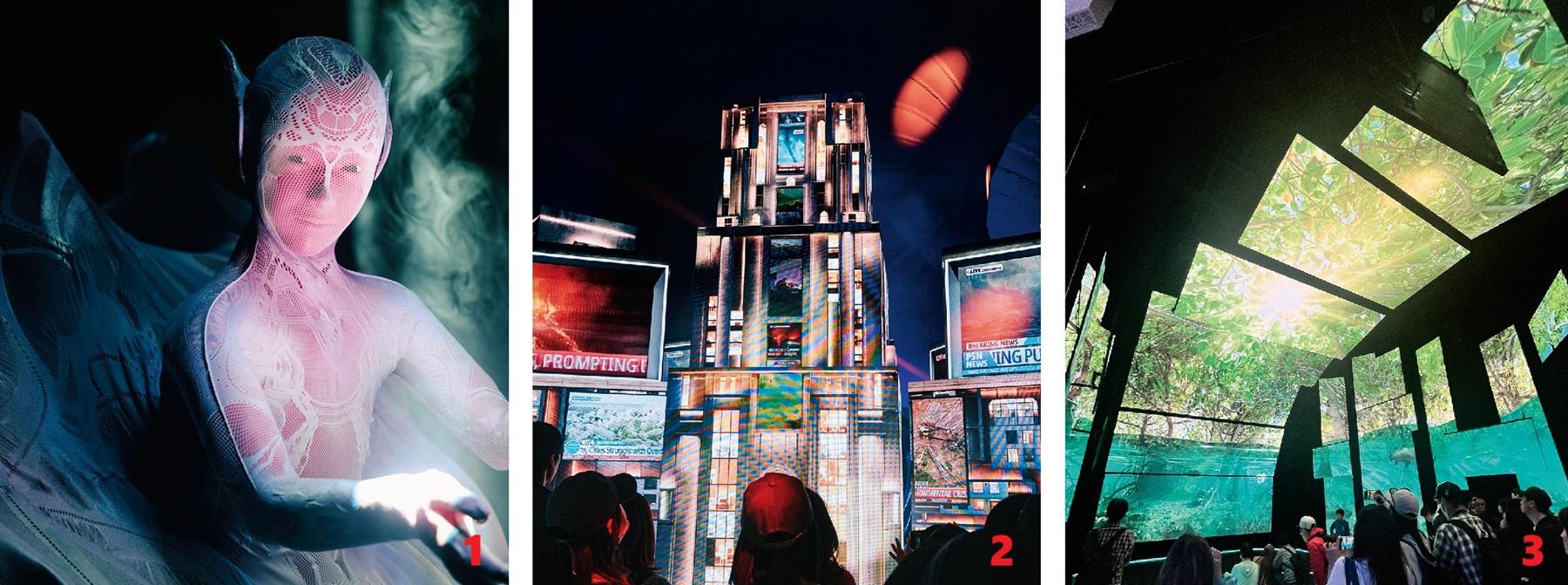 2、iPS心筋シートをはじめとした貴重な展示が並ぶ「PASONA NATUREVERSE」。自然とテクノロジーが共生した未来を、巨大なLEDキューブに映し出すショーが圧巻。