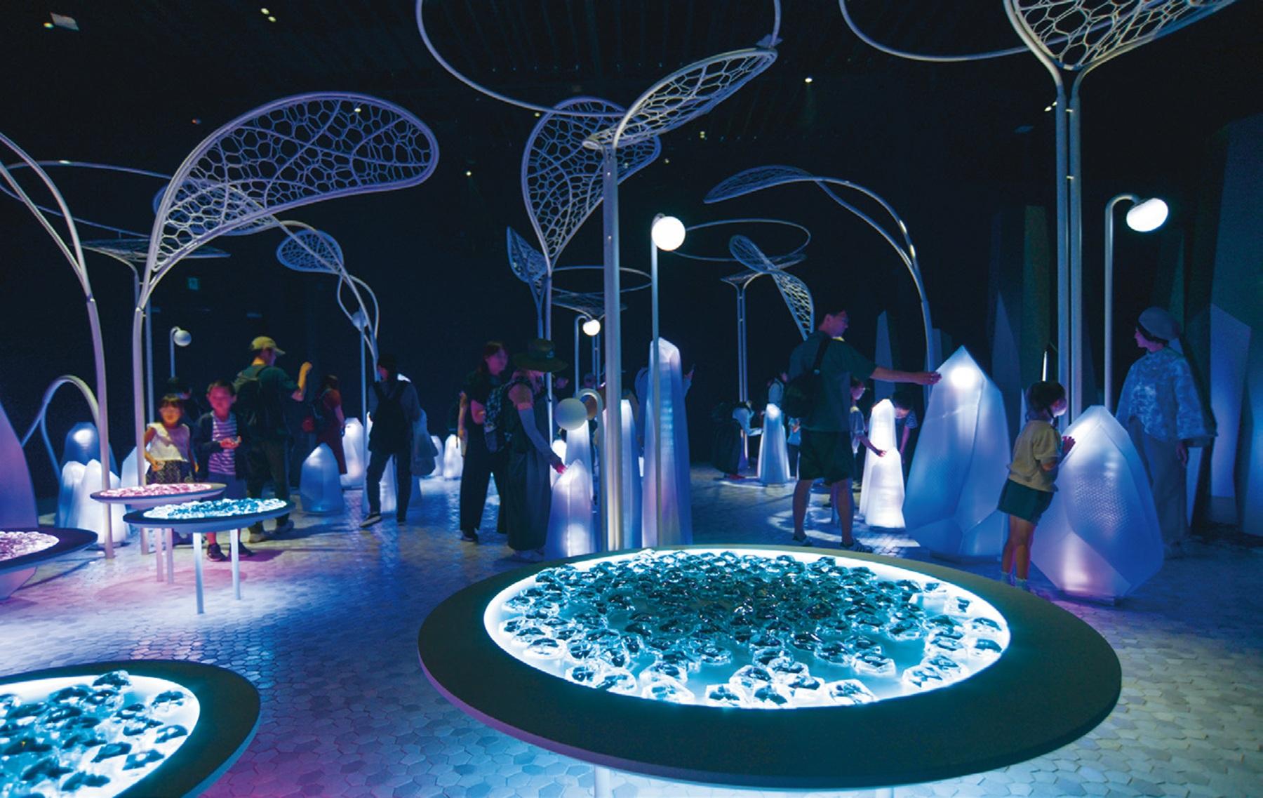 モノとココロが写し鏡になった不思議な国に迷い込んだ来館者たちは、結晶を手に持ち、自分に秘められた可能性を探す体験ができる。立体音響や360度映像、極微細ミストのスクリーンなど最新技術を用いることで五感を刺激。「ひとの理解」研究に基づく行動解析・表情解析などの技術と独自開発した感性モデルを用いて、一人ひとりの個性や特性を反映した異なるストーリーが楽しめるのも魅力。