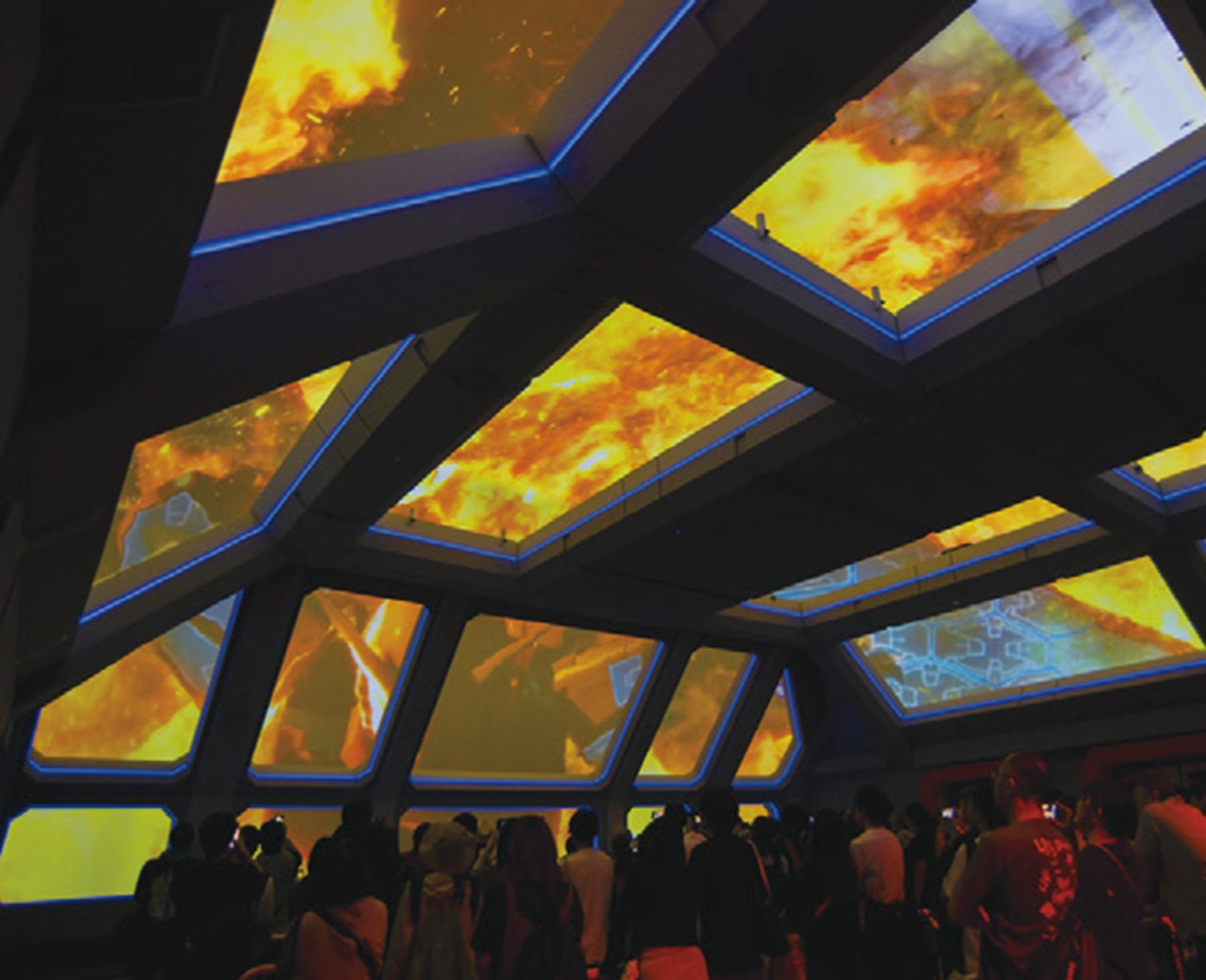 奥行18m、高さ8m超の映像とソニーの触覚提示技術(ハプティクス)で圧倒的な没入感。