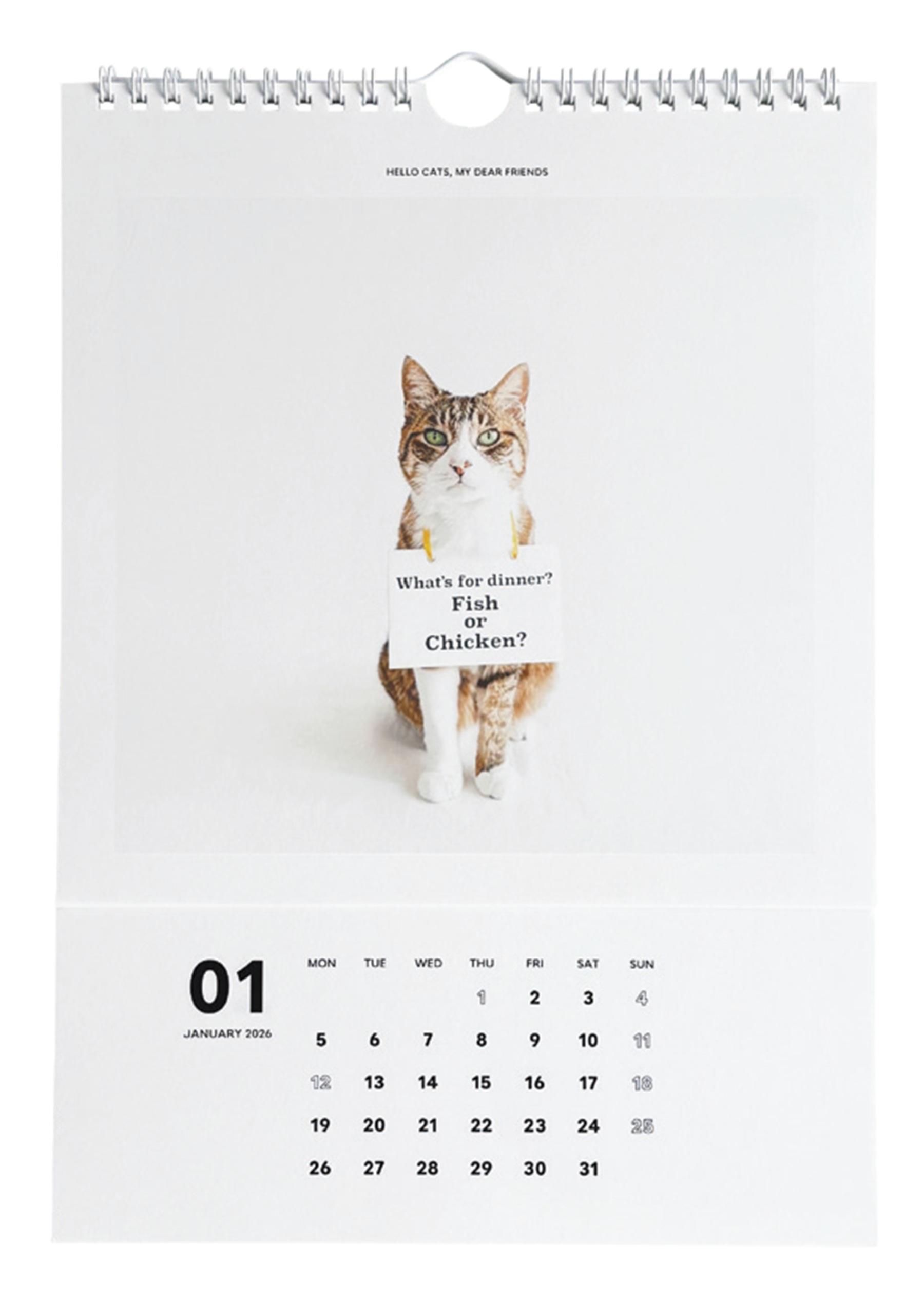 人気猫インスタグラマー・MARCOさん撮影の保護猫チャリティーカレンダー。2024年のムック「にゃんこ♡LOVE」の表紙を飾ったメイをはじめ、自宅と実家の猫の日常を切り取った写真はコミカルでシュール。