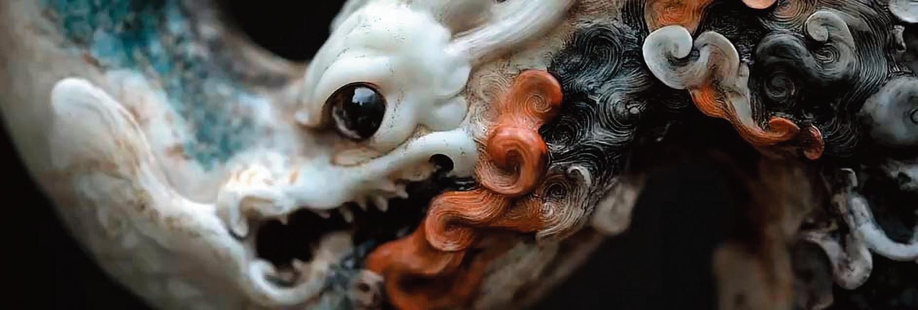 生成AIが生み出す海洋生物や龍の姿が変化し続ける映像展示。「デジタルネイチャー(計算機自然)」の概念のもと神秘と科学、物質と非物質の境界を超えて流転する世界を表現。