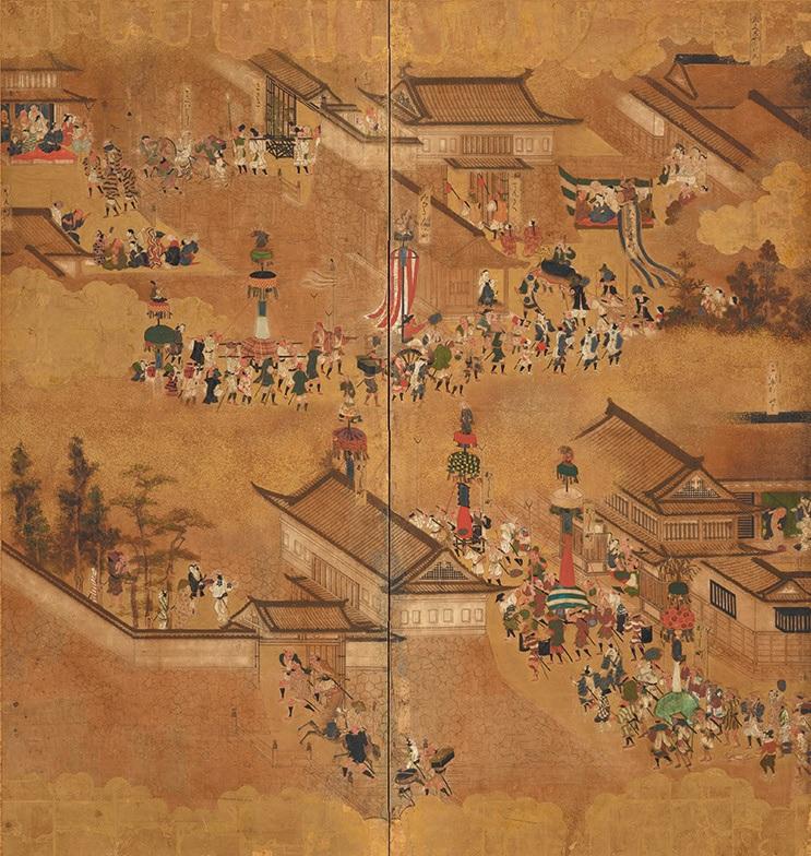 明暦の大火(1657年)で焼失する前の江戸城天守閣が描かれた作者不詳の屛風が初披露。/《江戸天下祭図屛風》(部分) 江戸時代 17世紀 石橋財団アーティゾン美術館 展示期間:4/3~5/24