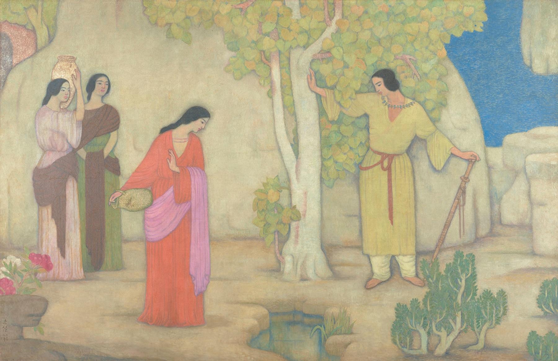 明治・大正期に描かれた古事記の「海幸山幸」を題材にした作品を集めたセクションでは、当時の観客の一人という設定。/小杉未醒《山幸彦》1917年 石橋財団アーティゾン美術館
