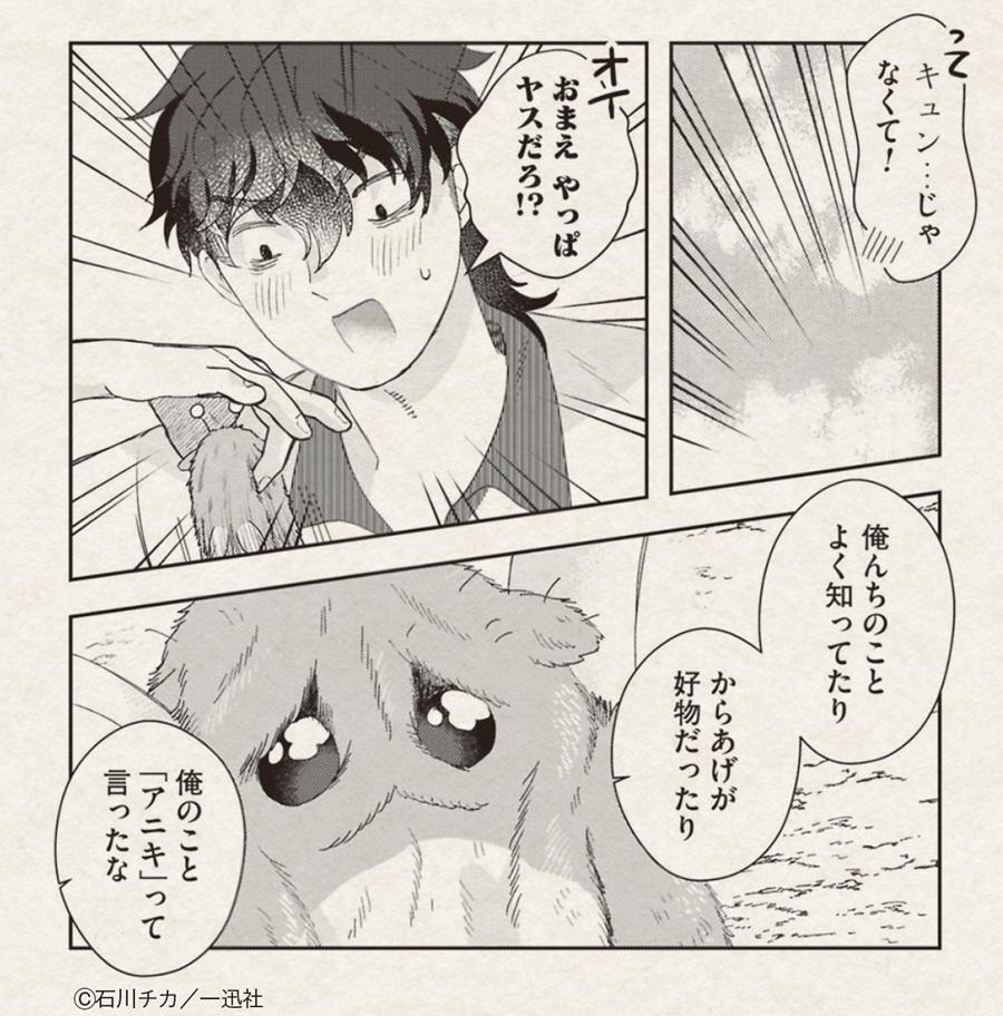 石川さんが親しみを込めて“アイツ”と呼ぶ謎の生き物は、モフモフで頭に触角らしきものが生えている。そして潤んだ瞳は、鬼怒が生き埋めにされる前まで一緒にいた、消息不明の相棒・ヤスとどこか似ている。