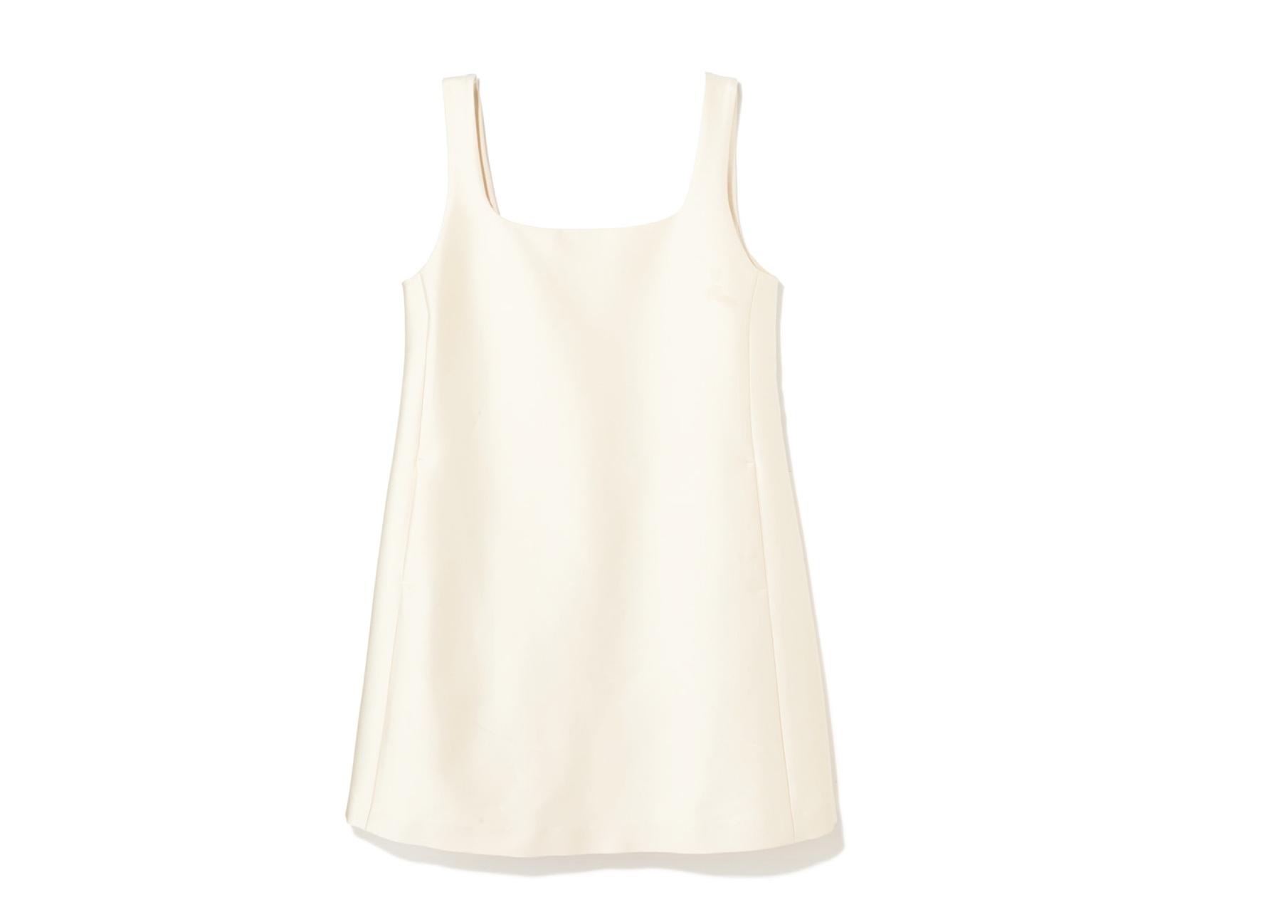 トレンド感がありながら、自分色の着こなしを楽しめる8月スタートのブランド。サテンのミニドレスは、抜け感のあるスクエアネックで、ヘルシーな肌見せが叶う。