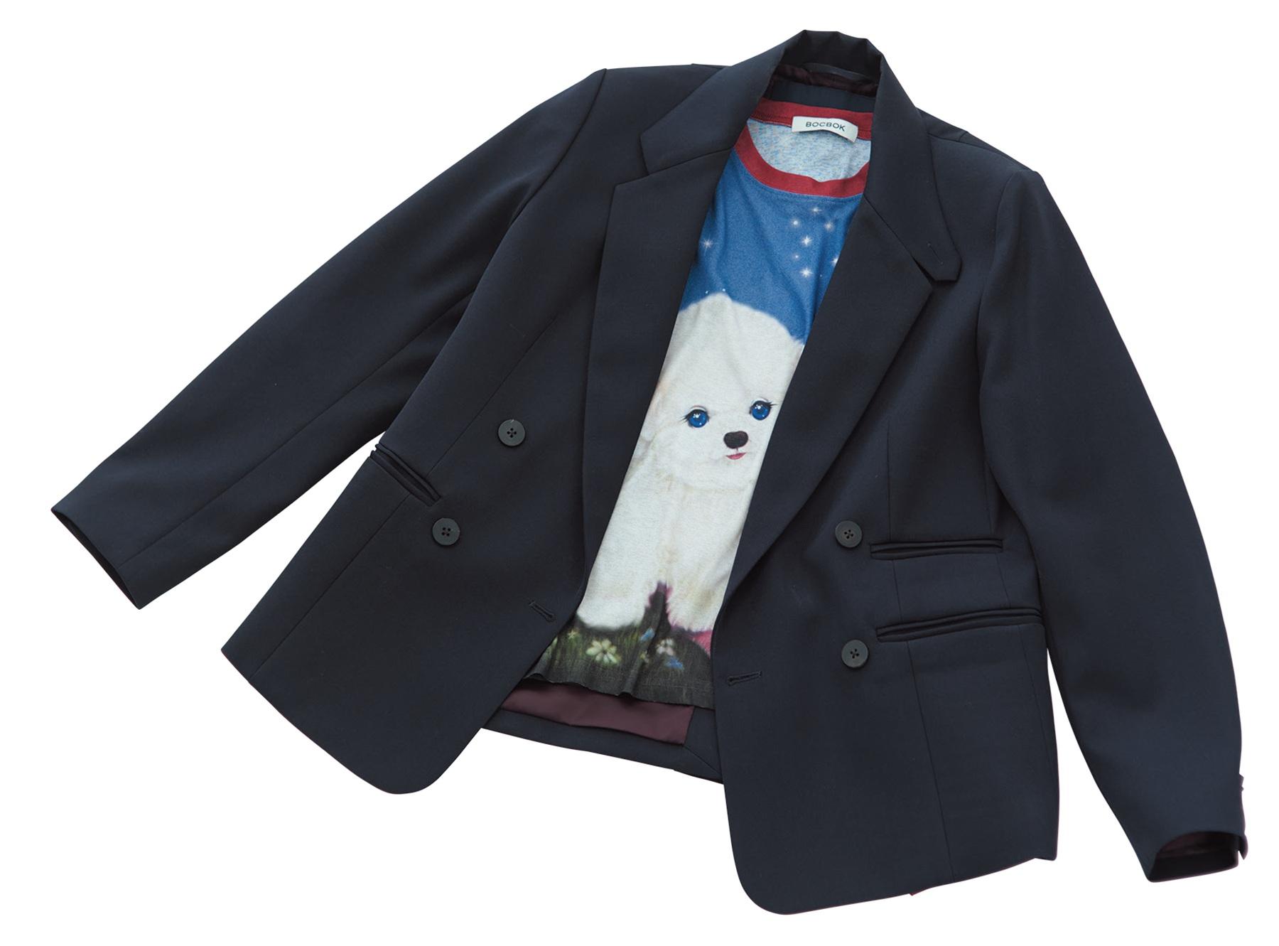 A、キレイめジャケットを加えてかわいいキャラを大人の遊び心に