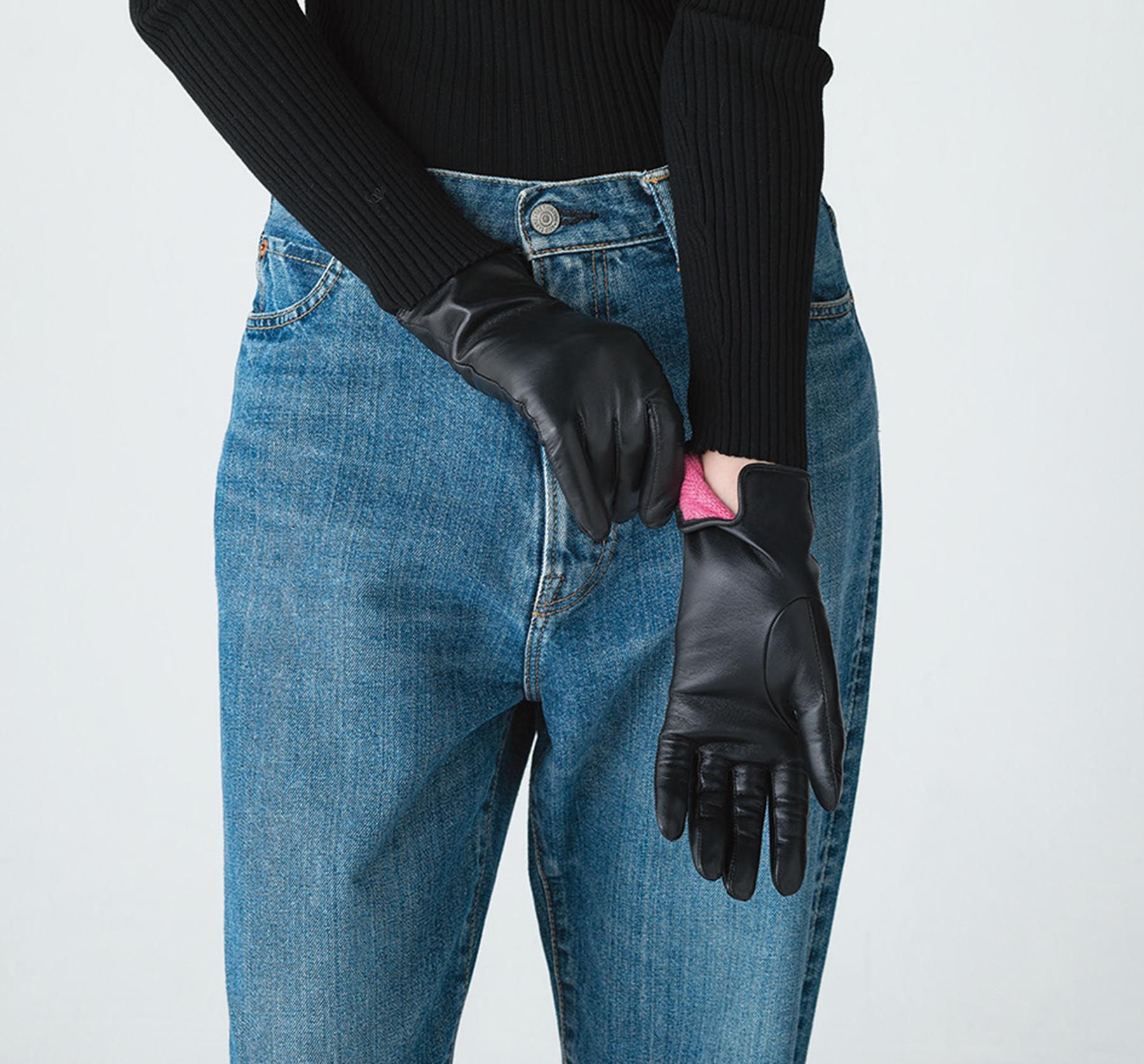 イギリスの老舗手袋メーカー『デンツ』のヘアシープのレザーグローブは、着用していることを忘れてしまうほどの極上のフィット感が特徴。グローブをしたままスマートフォンの操作もできる。