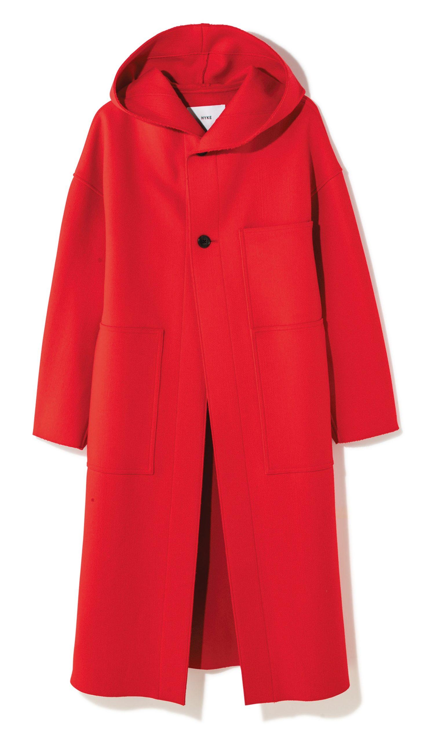 ヴィンテージのワークジャケットからインスピレーションを得たフーデッドコート。ハリのある上質なウールのメルトン素材で、フードも立体的な美シルエットを描く。¥88,000(ハイク/ボウルズ TEL. 03-3719-1239)