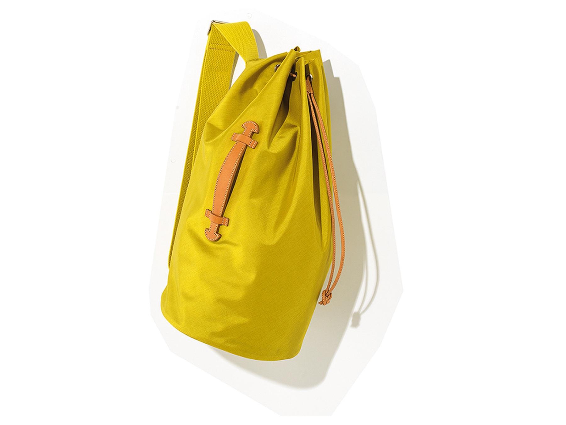 『AETA』に製作を依頼したワンショルダーバッグ。バケツ型シルエットにナイロン×レザーの組み合わせがスタイリッシュ。φ24×H50cm ¥77,000(オーラリー メイドバイ アエタ/オーラリー TEL. 03-6427-7141)