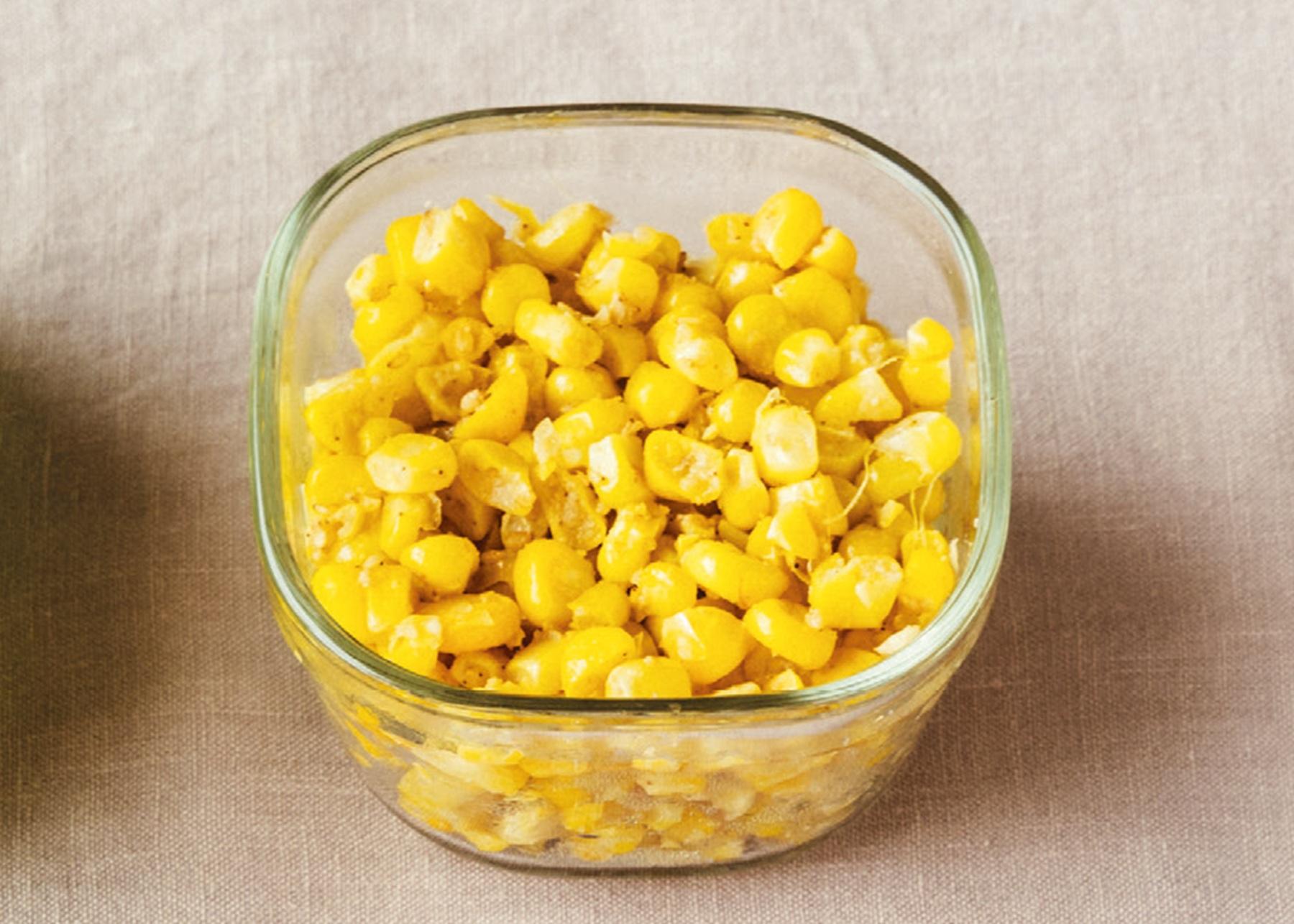 とうもろこし…2本(または缶250g)、オリーブオイル…小さじ1、すりごま…大さじ1、塩…少々