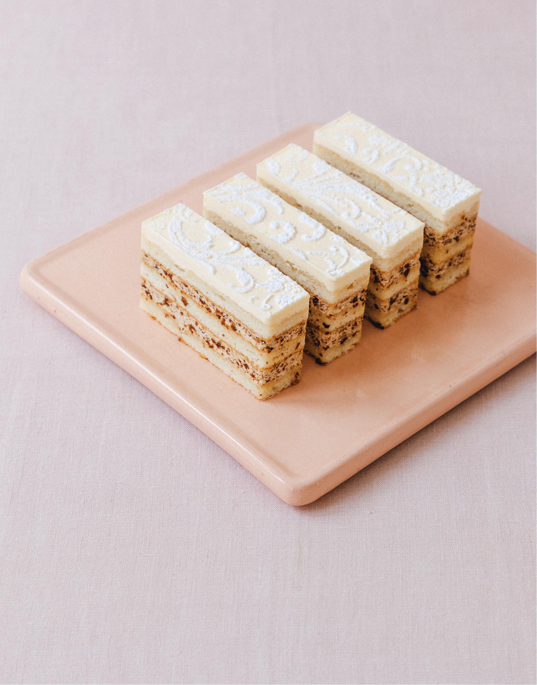 フランス語で「哀れな」という意味を持つ、ベルギーの庶民のお菓子を中野竜弘シェフが再構築。バタークリームを水で作るという基本レシピを守りつつ、ラムレーズンの風味と織物のような模様で優美にアレンジ。「他にもビスキュイ・サヴォワなど、中野シェフのフィルターを通した伝統菓子はどれも素敵」東京都目黒区青葉台2-16-4/TEL. 03-6820-8462/10:00~19:00/水・木曜休