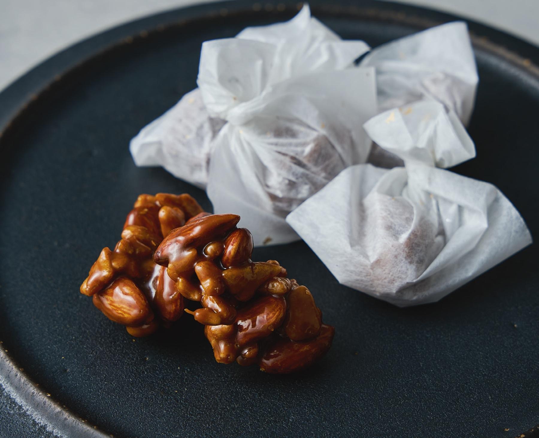 その名の通り、和な雰囲気も洋なムードも併せ持つ、アーモンドの一口菓子。選びぬかれたアーモンドを生クリームとバター、マイルドな甘味とコーヒーの香ばしい苦味で飴がけをした、サクサクとした食感が美味。生クリームとバターは北海道産を使用、保存料や香料は一切使用していない。白い和紙に包まれたルックスが上品で、目上の方への贈り物にもよさそう。