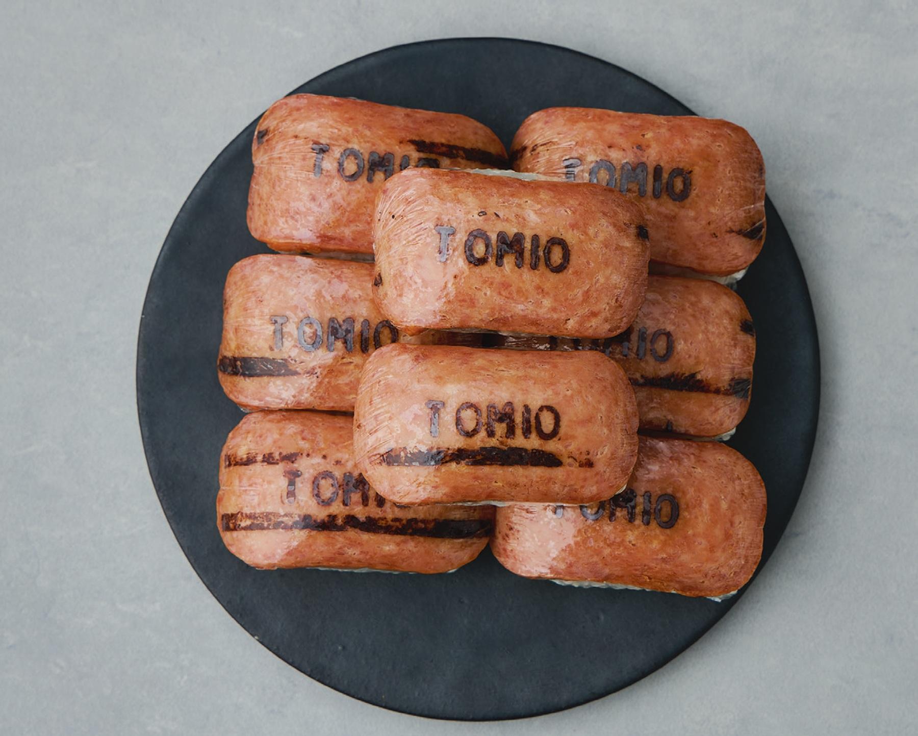 ハワイのローカルフードとして知られるスパムむすび。こちらは麻布十番にある専門店のスパムむすびで、ロケ弁や差し入れなどで大人気。「こちらも浜田雅功さんからの差し入れでいただきました。焼き印で名前を入れてくれるサービスがあるのですが、最近僕は研ナオコさんと一緒に舞台に出ているので、〈TOMIO〉と〈NAOKO〉と入ったものをいただきました。パーティなどに持っていくのにいいのでは」。
