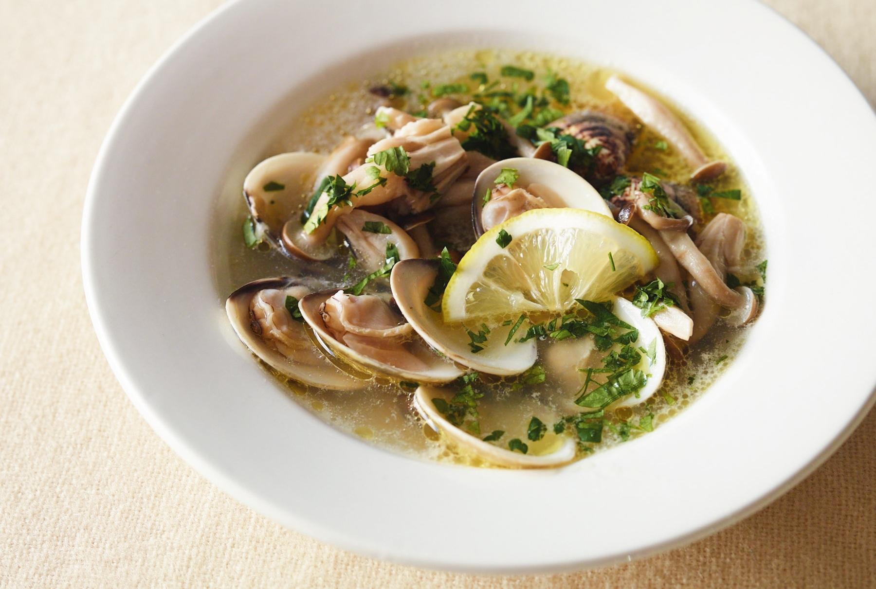 カルシウムやタンパク質が摂れるアサリは、滋味深い出汁としても優秀。レモンを加えて華やかに。