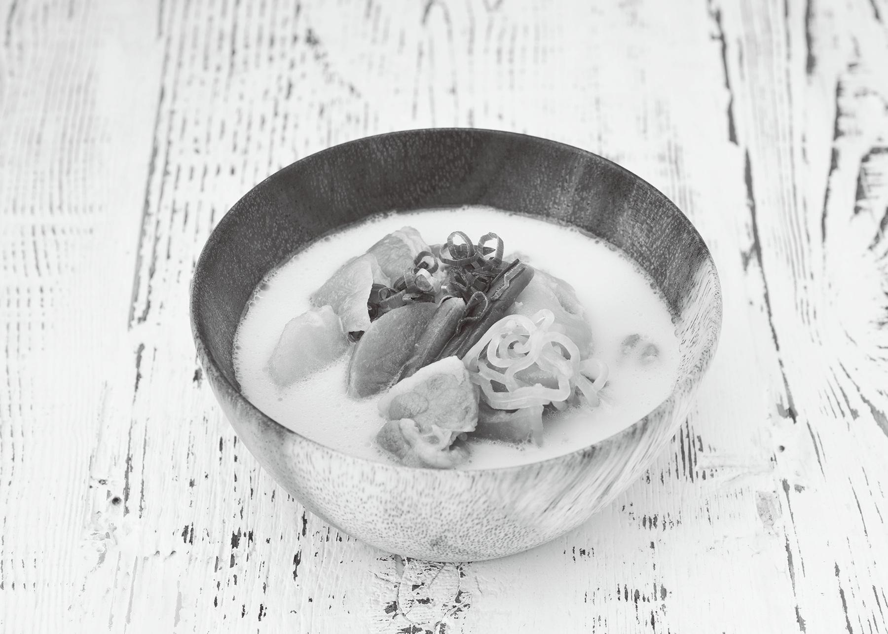 ② 豆乳を加えて温め、塩(分量外)で味を調える。豆乳は沸騰させると分離しやすいため、加えたあとは弱火で煮立たせないように。