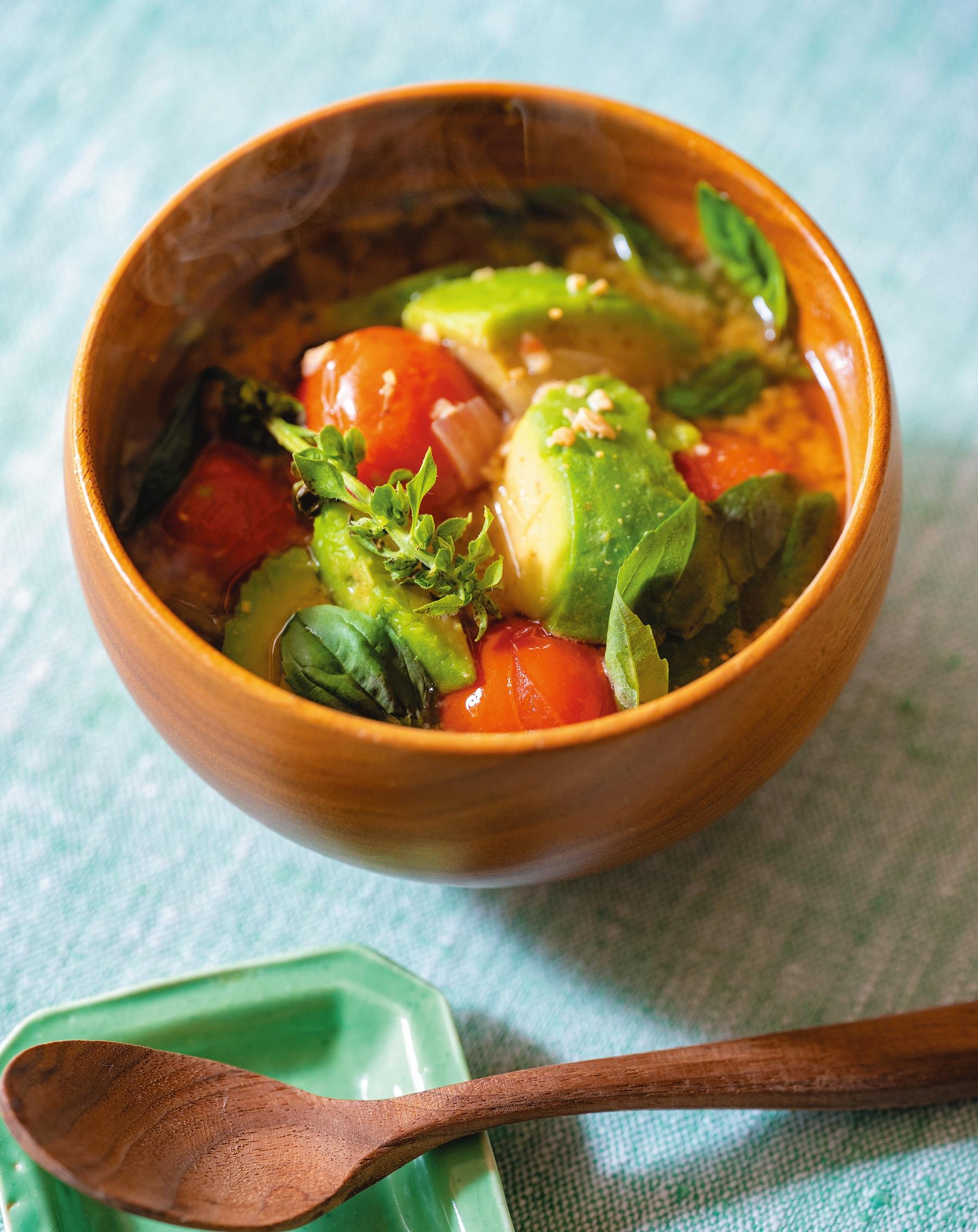「春はストレスの影響で、腸内環境が乱れやすい。だからアボカドの油分で腸の滑りを良くしつつ、トマトで不足している水分を補える一杯は、腸の働きを良くしてくれます」