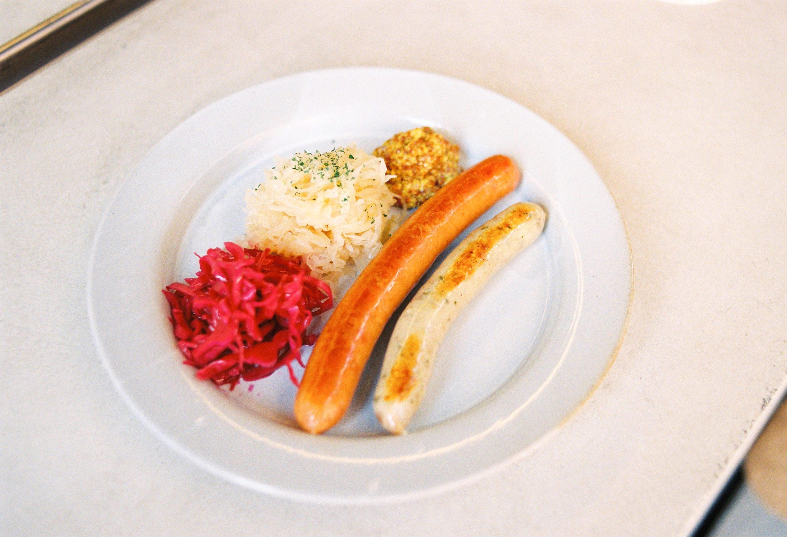 つまみにソーセージも(フランク&ハーブ)(2本1050円)。2本か4本で選べる。沖縄市にあるハム・ソーセージ専門店TESIOから取り寄せているそう。