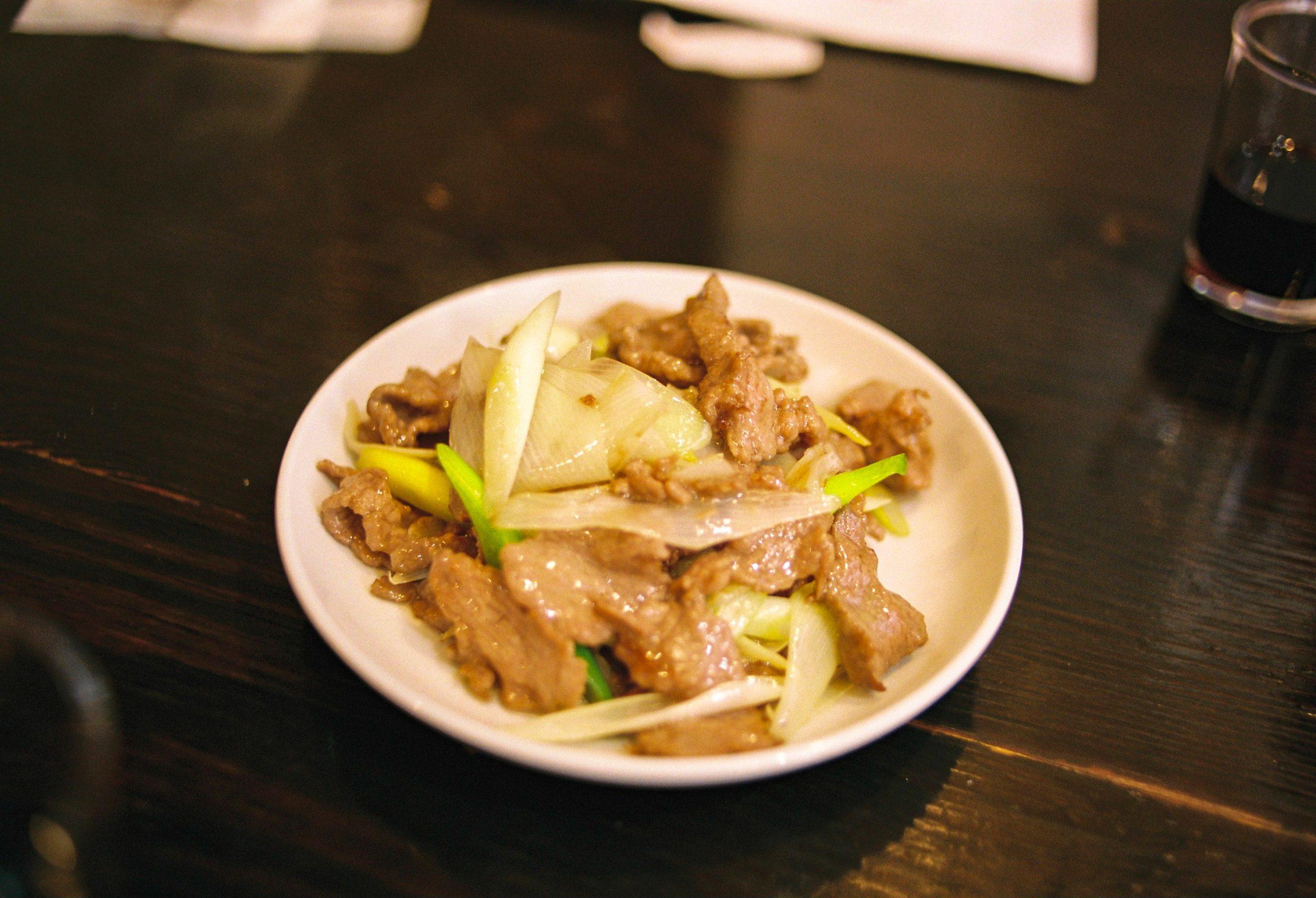 ラム肉と長葱塩炒め(1,320円)。上質なラムの香りと爽やかな長葱の組み合わせはリピート必至。シンプルイズベスト…!