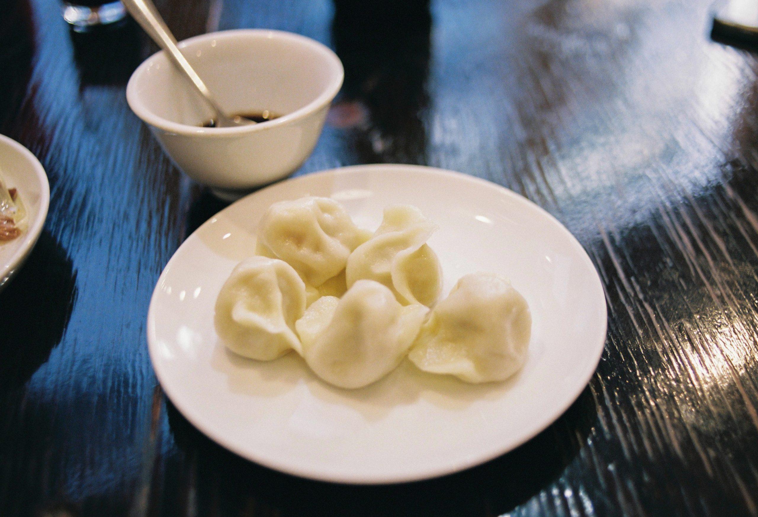 もちもちコロンと水餃子の具にもラム肉がin。ラム肉入り水餃子(5個入り650円)。