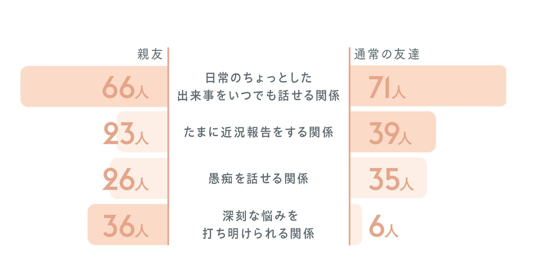 親友…66人、通常の友達…71人