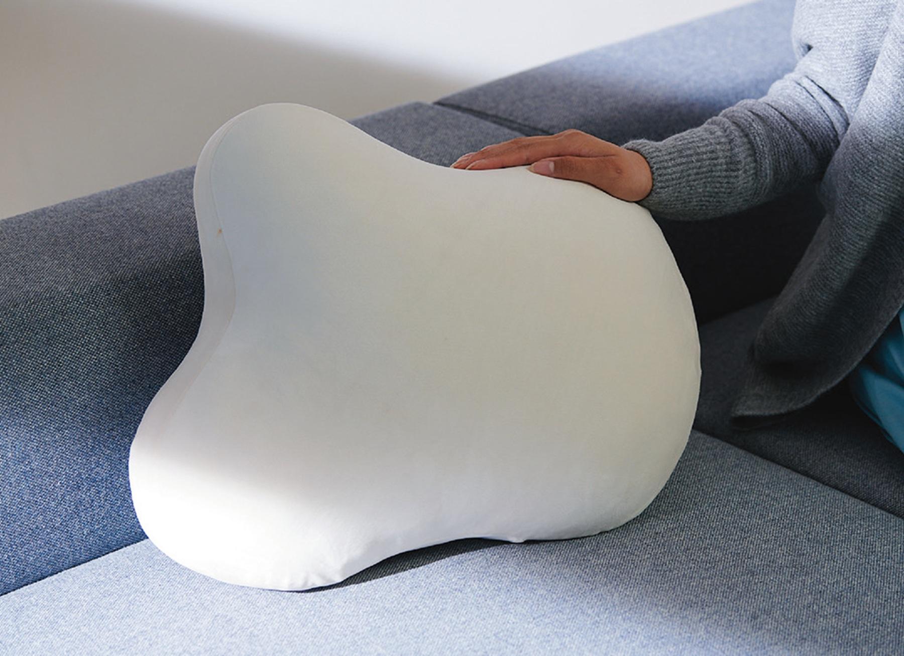 雲のような形をしたこちらは、“呼吸する”クッション。ゆっくり膨らんだり、縮んだりするので、抱きかかえながら息をしているうちに、自然と呼吸が深くなる。デスクワークに集中して呼吸が浅くなりがちなときや、眠る前などリラックスしたいときにピッタリ。10分間、かかえるだけでOK。約W40×D45×H20cm¥29,800(ユカイ工学)