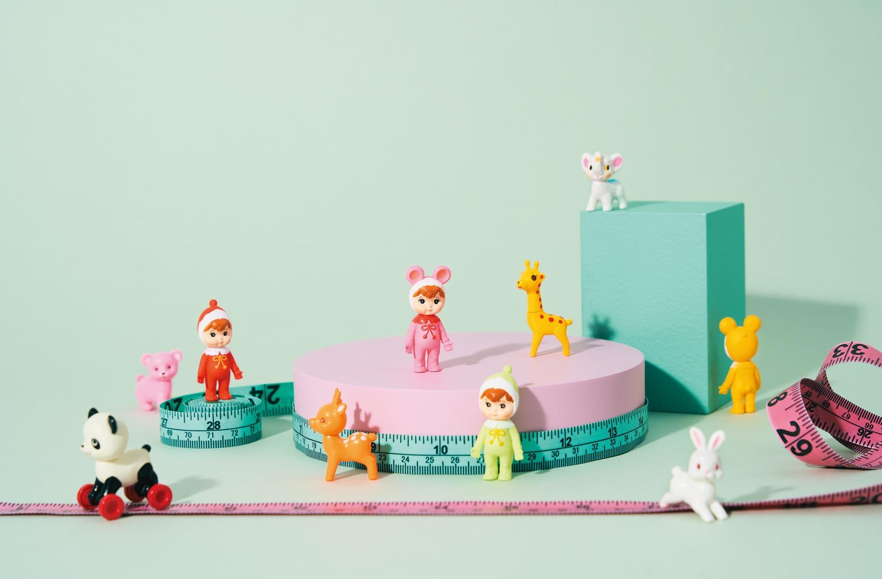 今や海外のアンティークショップなどでも人気、昭和40年代、東京の下町で生まれたソフビ人形〈なかよしチャーミーちゃん〉。おともだちの〈せっちゃんパンダ〉などとともにミニチュアに。