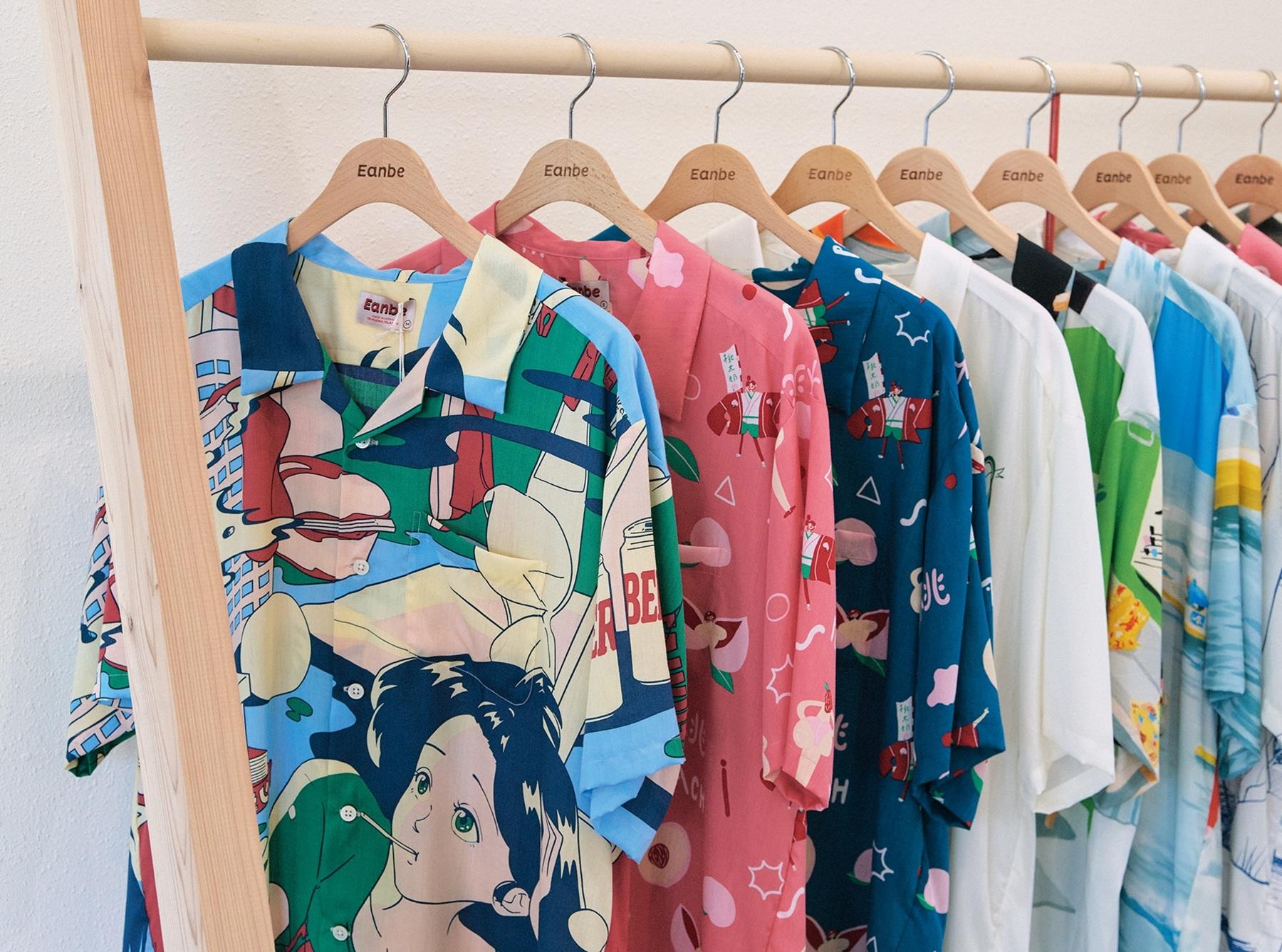 音楽やお酒など、各商品にテーマを宿したアロハシャツブランド『Eanbe』。絵柄も着心地も快く、モダンで振り幅のあるデザインは、毎度異なるイラストレーターとタッグを組むことで実現したもの。そのどれもが気分の良さを表す沖縄の方言“いいあんべぇ”の名に帰結する。小物やカフェメニューもあり。