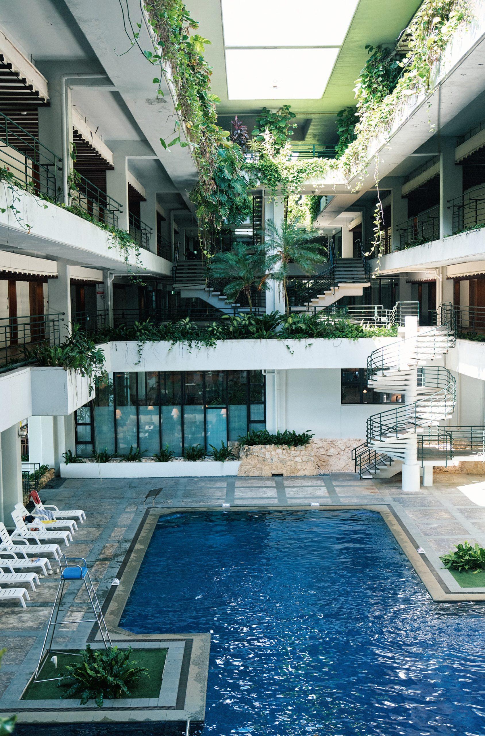 日の差し方で表情を変える、半屋内の「Atrium Pool」。