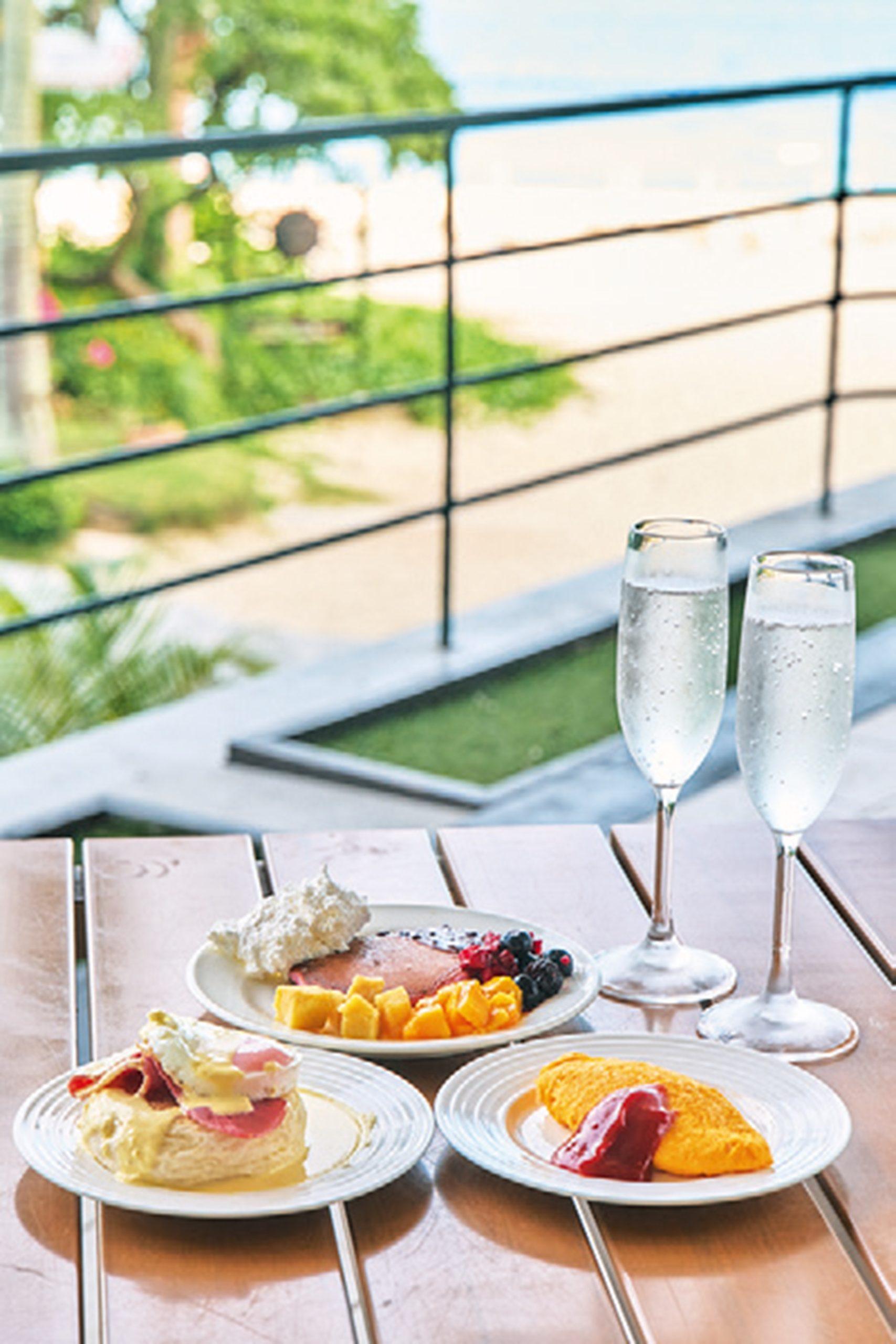 オールデイダイニング「コラーロ」でのモーニングビュッフェは、海の見えるテラス席がおすすめ。