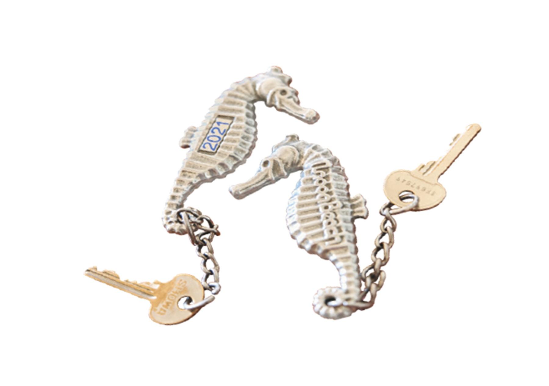 タツノオトシゴがモチーフのルームキーはなんと50年間現役。