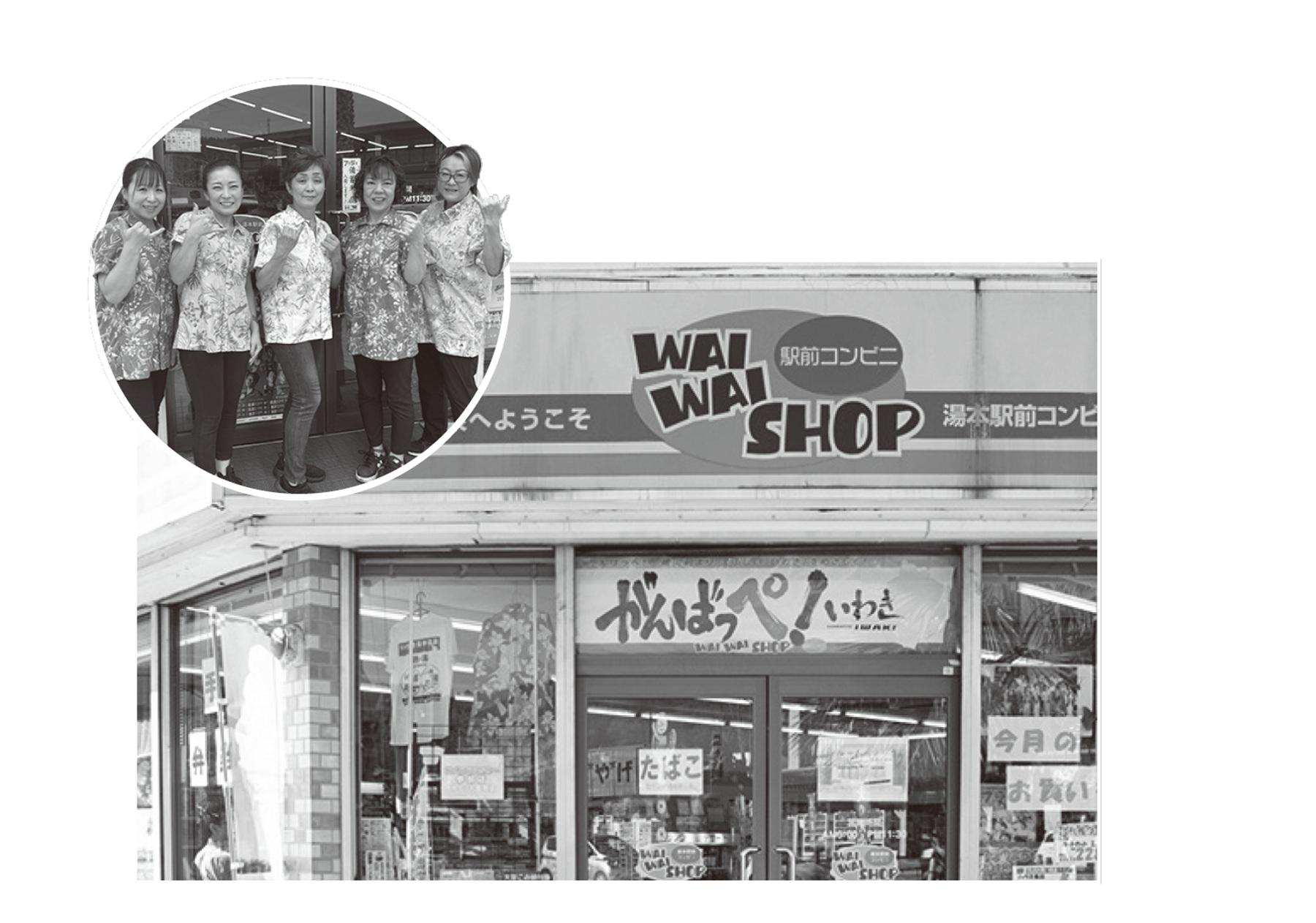 いわき湯本温泉の玄関口であるJR常磐線湯本駅前に、何ともノリの良いコンビニが。「店長の小林さんがいわきをこよなく愛し、地元を盛り上げたいと頑張っています。従業員全員がアロハシャツを着ているので、店内にいるだけでアロハな気分に」。「フラおじさんバーガー」が特に人気で、湯本のゆるキャラ「フラおじさん」がプリントされたご当地グルメはSNS映え必至!