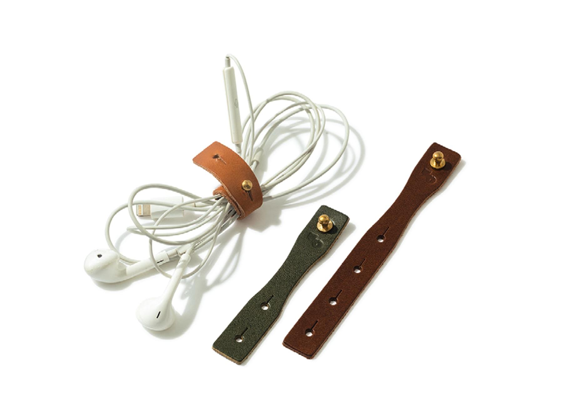 革のコードクリップで、細部のおしゃれも抜かりなく