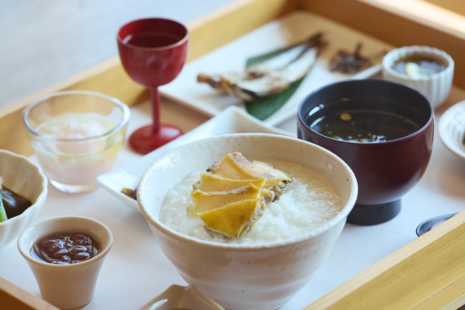 『あそらの茶屋』で食べられる「御饌(みけ)の朝かゆ 鮑 【朝限定】」¥2,750