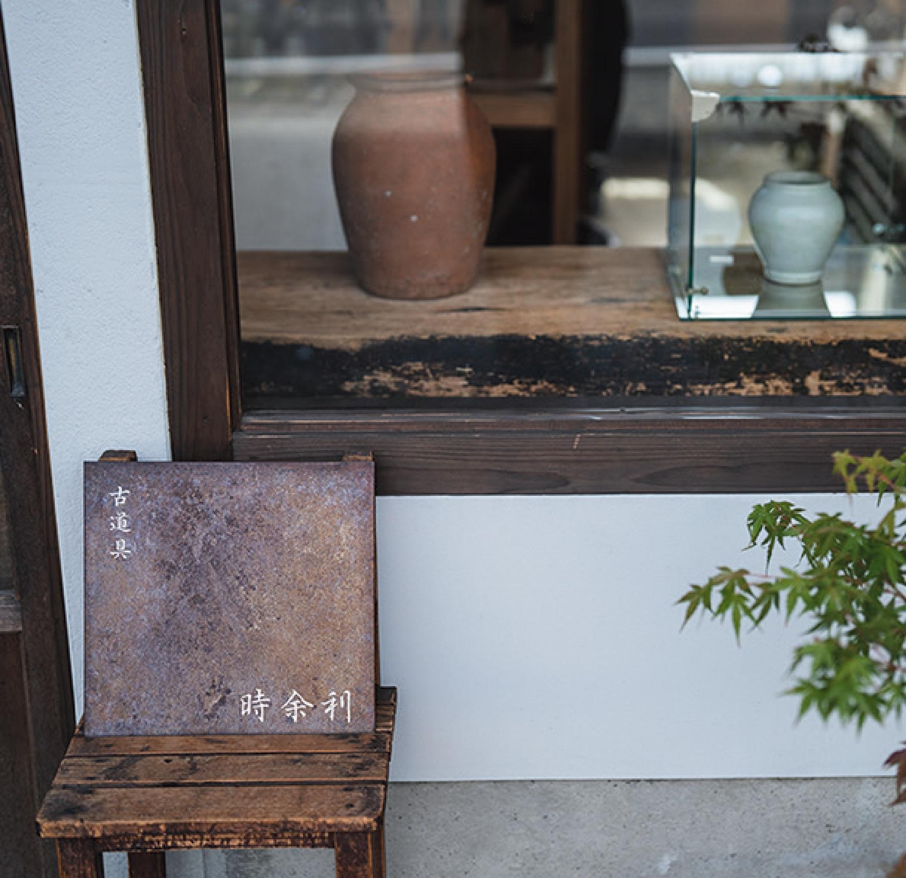 広い窓から自然光が降り注ぐ静謐な店内に、店主・君島北斗さんの目利きが光る古道具が計算された配置で並ぶ。「暮らしの中で使われていた道具の素朴さ、質素さの中に潜んでいる本来の美しさをセレクトの軸にしています」