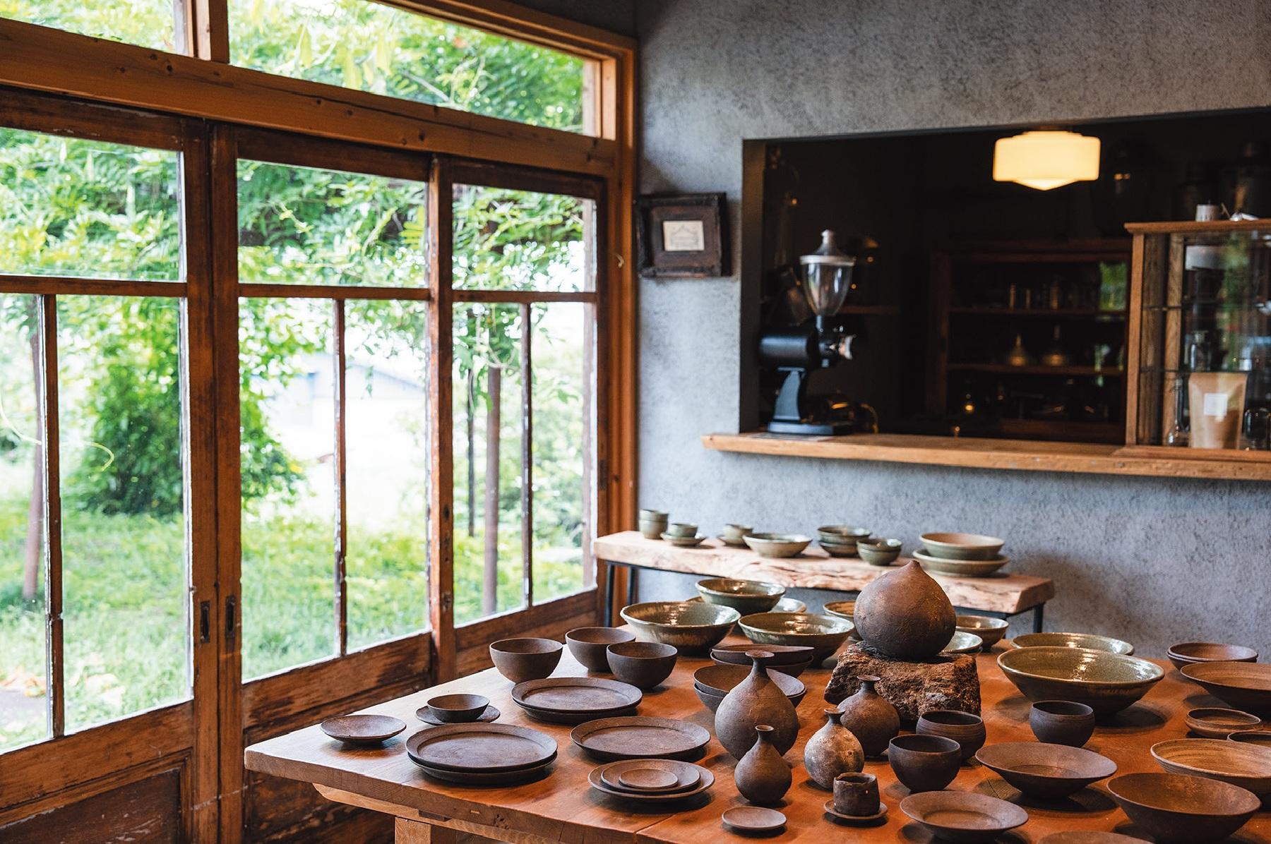 作品の雰囲気を際立たせるギャラリーの石段は、宇都宮市で採石される大谷石で作られたもの。オリジナルブランド『道祖土和田窯』のうつわをはじめ、常時40名ほどの作家の作品を揃えており、目移りする品揃え。