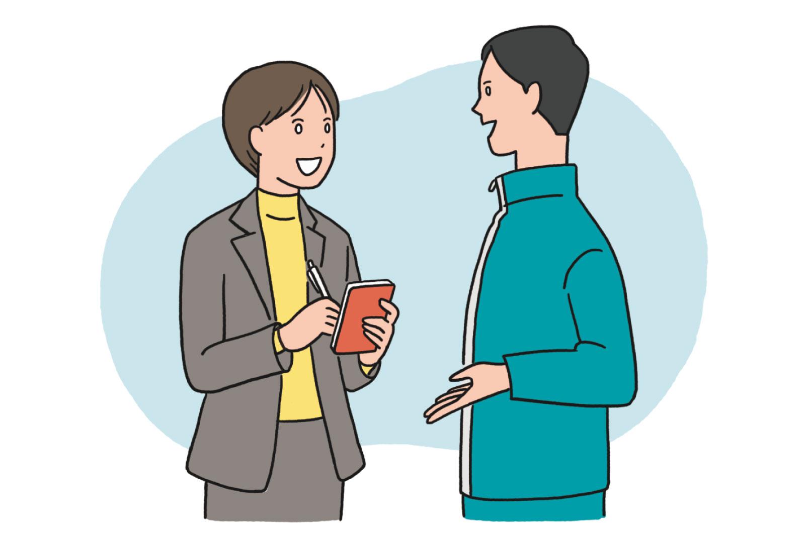 選手の地道な取材や的確な情報集めで先輩アナをサポート