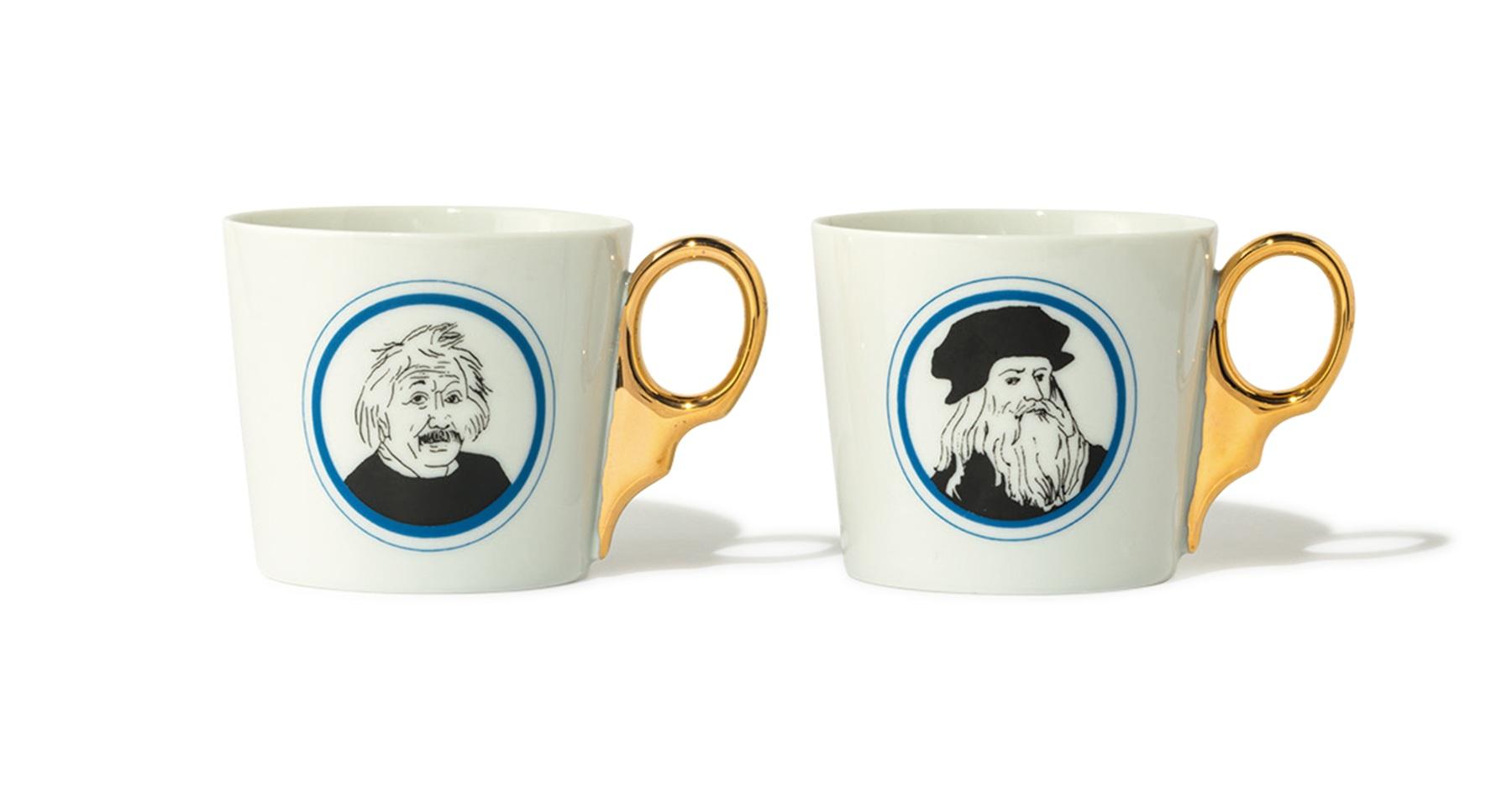 アンティーク調のデザインに著名人の似顔絵をON。ダ・ヴィンチやアインシュタインの他、カール・ラガーフェルドやアンディ・ウォーホルなどもあり、ひとつずつ集めていくのも楽しい。各¥14,300(クーンケラミック/FEELSEEN TEL. 03-6260-6335)
